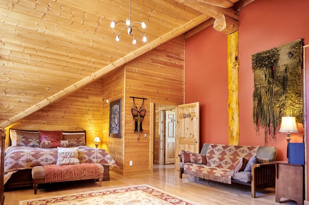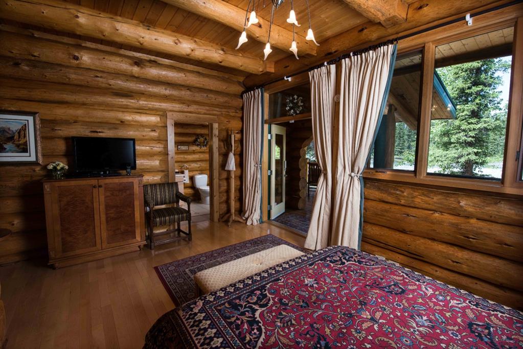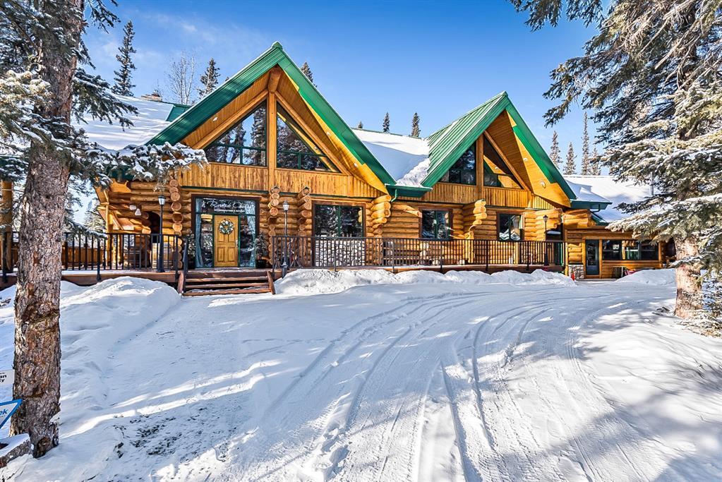 Rare lifestyle at the foothills of The Canadian Rocky Mountains. Only 30 min. drive to Calgary downtown. Welcome to the 104 White Ave. property, a unique 1.34-acre contemporary log home country estate nestled between the hamlet of Bragg Creek and Bragg Creek Provincial Park within walking distance to both and bordering 16 acres environmental reserve along Elbow River. The Douglas fir log elegant manor home features 6+1 bedrooms including 3 en-suites, a self-contained bachelor with separate entry and featuring in-floor heating and wood-burning stove, and a separate kitchenette living space above the detached 3-car garage. The bright & elegant 5000 sf south-western exposure main lodge features an impressive 26’ vaulted ceiling with river rock stone masonry/indoor gas fireplace, maple hardwood floors throughout, a pair of stained glass doors, gourmet Chef’s Alder kitchen with granite countertops, stainless steel appliances/gas range and an impressive granite 9’x 3’ kitchen island. Underneath the entire main house runs heated concrete crawling space (5’ height). In addition, there is a fully restored & electrified 1927 vintage cabin with water rough-in and adjacent storage shed. The house is connected to the townsite water/sewer system and it is supplied by tankless/on-demand water heater. There is a separate/emergency back-up cistern system/septic tank. This R-URB zoned trophy property is within coveted commercial designation; it has a potential to serve as a unique multi-generation family home. The forested parcel has direct access to the low bank Elbow River/pebble beach, is protected by the newly constructed dyke, features detached infrared heated 3-car garage with 220V outlet for EV car charger, newly professionally surfaced asphalt driveway and spacious guest parking area, wrap-around veranda with a river rock stones masonry outdoor gas fireplace, outdoor 6-person deep-soak cedar jacuzzi tub, 4-person wet sauna, fire pit, commercial 200 Amps main electric panel. This is your rare opportunity to capitalize on various life opportunities at the very footsteps of pristine Kananaskis Country and in the thriving Bragg Creek hamlet. Showings are by appointment only.