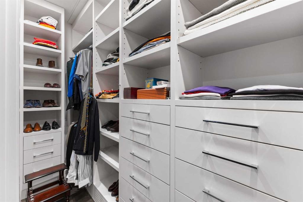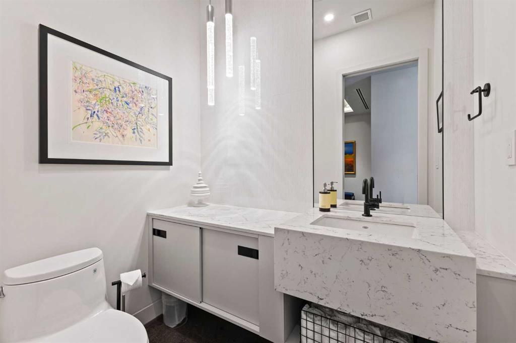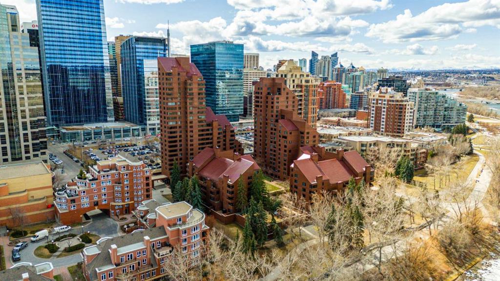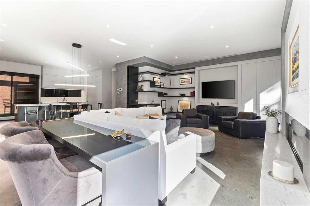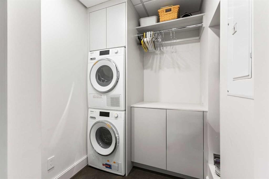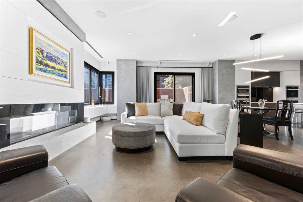 This meticulously renovated residence by Stephanie Martin Interior Design presents an unparalleled balance of contemporary elegance, and curated living. 10ft. ceilings create an immediate sense of grandeur, complementing the high design where every detail maximizes functionality, including integrated storage solutions for a streamlined aesthetic. The inviting living area, featuring a fireplace with painted glass surround, a custom-built sectional, including a bespoke desk for optimized remote work—seamlessly blends high design with productivity. The dining space is anchored by a suspended lighting fixture, large kitchen island, and a premier appliance package for a true chef's experience. This thoughtfully executed one-bedroom layout includes a custom walk-in closet for superior organization. The European spa-inspired ensuite bathroom offers a luxurious escape, featuring an Ultra bath air tub and an open-style shower. A well appointed powder room, and laundry room complete your home. Beyond the refined interiors, this main-floor unit home has two private patios, extending the living space and offering an immersive urban experience. Located within the prestigious 500 Eau Claire Estates, it provides a unique balance of tranquility and accessibility, discreetly positioned in a secluded section of the building. The details of the renovation are precisely implemented, and must be experienced to appreciate this level of exemplar design.