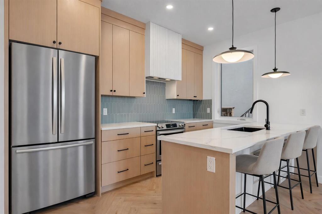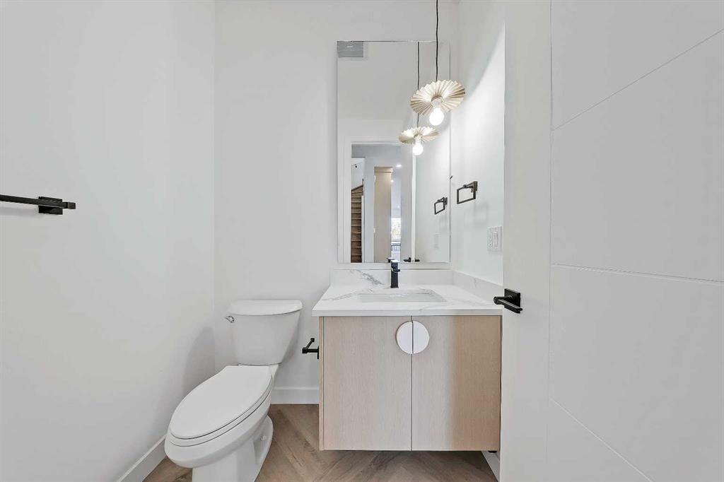 Move into the heart of South Calgary today with this brand-new, walkout townhome that perfectly blends luxury, location, and low-maintenance living! Thoughtfully designed w/ 3 beds, 2.5 baths, and a LEGAL 1 BED SUITE (approved by the city), this is inner-city living without compromise! The interiors strike a perfect balance between modern luxury & livable design. Find high-end finishes that are rare to find at this price point — blonde wood tones, sleek custom cabinetry, and modern & thoughtful tile. Designer hardware, mid-century inspired embellishments, and a clean neutral palette give this space a fresh, elevated vibe. The kitchen is the heart of the home, designed w/ both form and function in mind. A large quartz island anchors the space w/ bar seating for casual meals or morning coffee. There's a full stainless steel appliance package, generous cabinetry, and a stylish backsplash that adds just the right amount of visual interest. It's open to the dining area and spacious living room & balcony, creating the perfect layout for hosting or just relaxing at home. And don’t forget the upscale powder room, complete w/ designer lighting. Upstairs, the primary suite feels like a boutique hotel retreat w/ a PRIVATE BALCONY, a large walk-in closet, and a modern 3-pc ensuite w/ a fully tiled walk-in shower. Two additional bedrooms and a full bathroom give you space for guests, kids, or home office! And yes, there's a laundry room upstairs, tucked conveniently between bedrooms. Downstairs is perfectly set up for a mortgage helper, additional income generator, or the perfect spot for multi-generational living w/ a LEGAL 1-BED SUITE (approved by the city). The modern touches flow into this space as well, w/ an open kitchen & living room space w/ ceiling-height cabinetry, stainless steel appliances, and quartz countertops, complete w/ separate laundry, a great-sized bedroom, and a full 4-pc bathroom. There is a separate entrance to the suite, as well as access from the main home to the suite for complete ease of use. The suite also boasts a private deck. The low-maintenance landscaping and a detached garage at the back are a serious bonus in the inner city. The backyard also features upright bike racks & secure CycleSafe lockers for added convenience. You’re tucked into a tree-lined street in South Calgary, but just a short stroll to absolutely everything. Our Daily Brett and South Calgary Pool & library are just at the end of the street, cSPACE King Edward’s arts & community programming is just a few blocks over, and all the everyday amenities in Marda Loop are w/in walking distance — Blush Lane Organic Market, Safeway, Shoppers, fitness studios, and an incredible lineup of restaurants. You’re minutes from 17th Ave’s restaurants & nightlife, and a quick commute to downtown! Whether you're looking for a stylish new home in an established neighbourhood or a long-term rental property w/ strong demand, this unit is an incredible opportunity! *pictures from show suite*