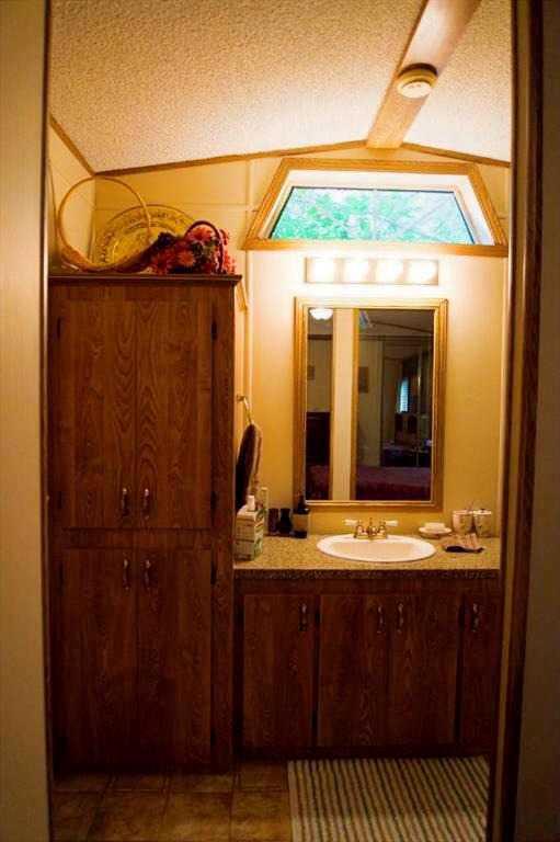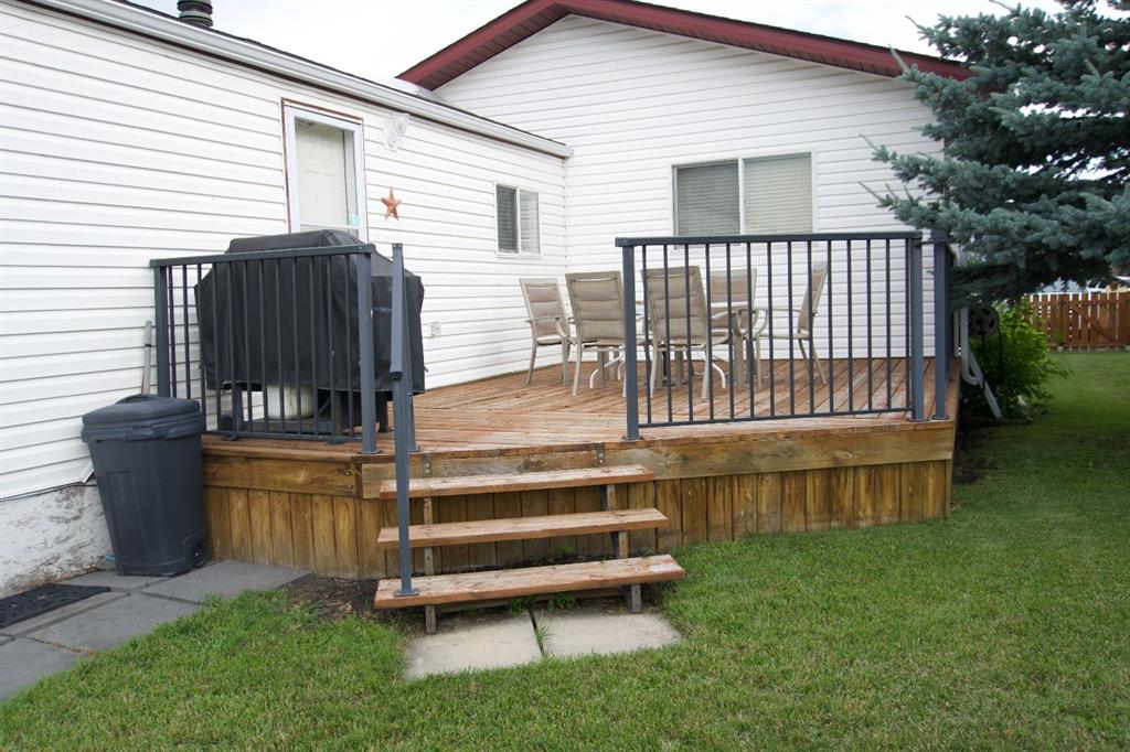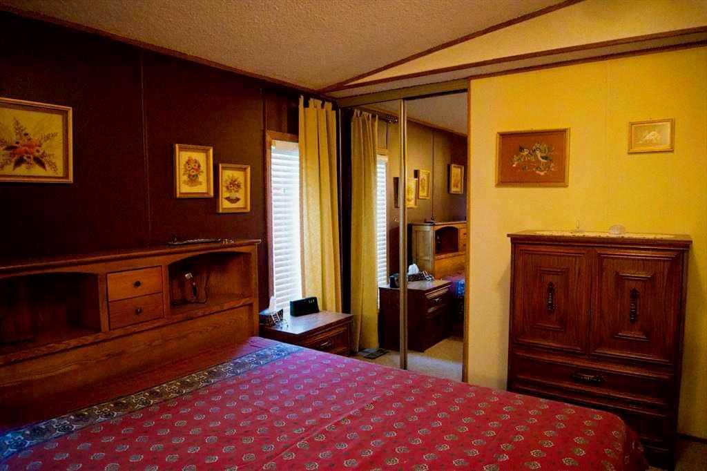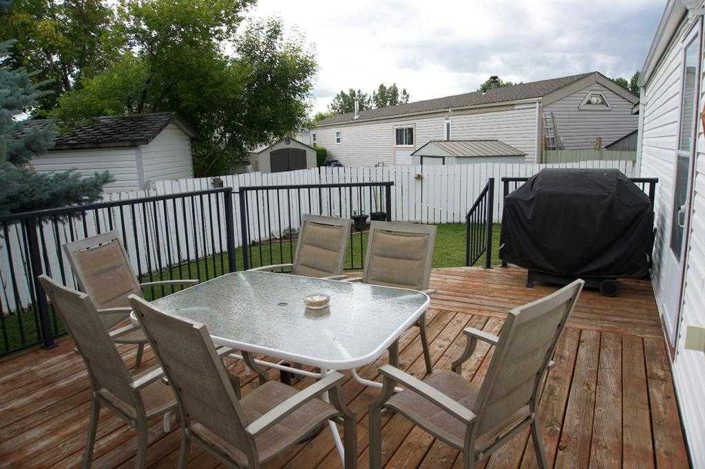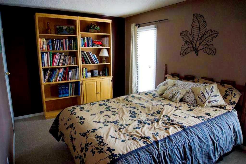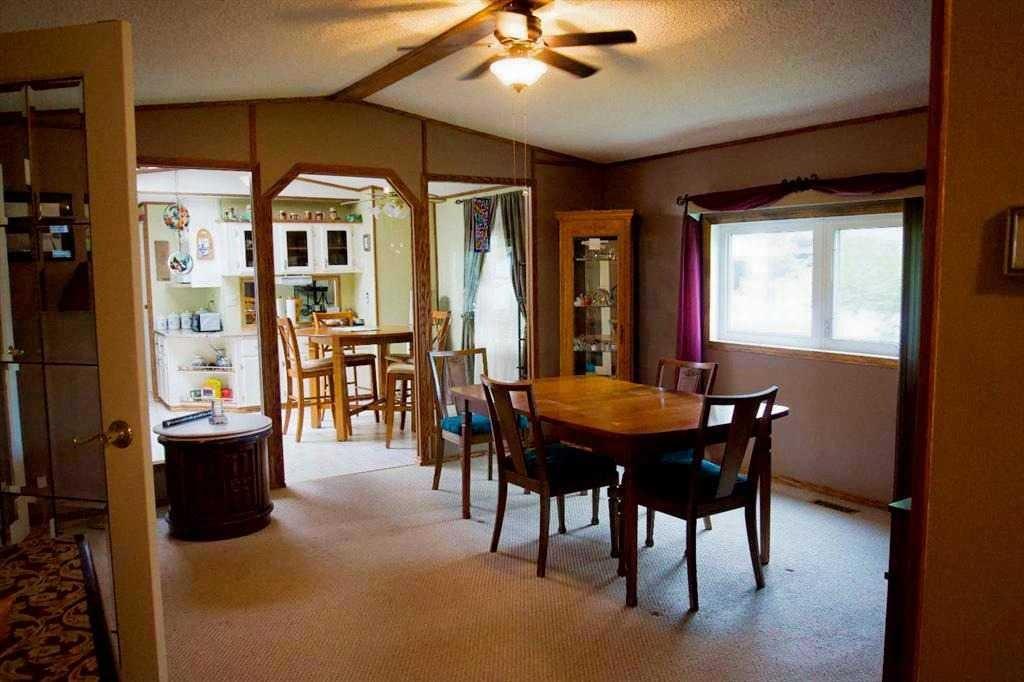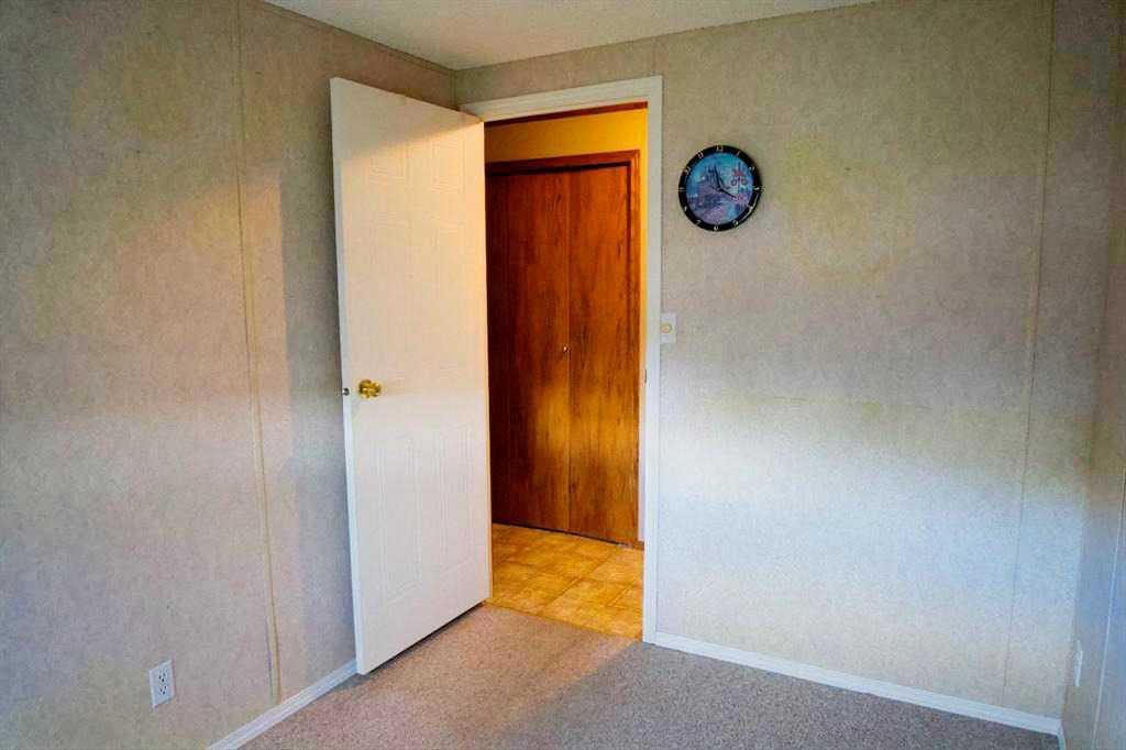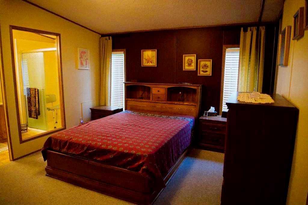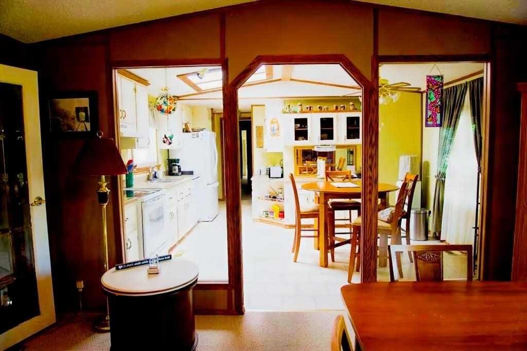 Welcome to 50+ living in this adult community designed with seniors in mind. This single wide mobile home with a generous addition creates a unique floor plan boasting a lovely living/ TV room overlooking the deck, a 4th bedroom (currently used as an office), and a generous foyer complete with large coat closet and ample seating to conveniently change footwear. The irregular shape of this front entry accommodates space to welcome several guests at one time. The original living room is now a semi-formal dining room, featuring a west facing large window, carpet flooring, and French doors to the adjacent living room. Glass partition walls either side of the entrance to the bright eat-in kitchen creates an open flow while delineating the space for furniture placement. The kitchen workspace is flooded with natural light from the skylight and window overlooking the deck. Other features include ample cupboard space , a built in China cabinet, and pantry with slide out shelving for convenience. Down the hall a step or two is the laundry/storage/mechanical room opposite the back door which accesses the generous deck. Here is an outdoor space for B-B-Q, summer suppers in a private space sheltered from northerly and westerly breezes, overlooking the fenced back yard. Back inside the entire south end of the home is the primary bedroom featuring a 3 piece ensuite. The walk-in shower there was created by "Bath Fitter" in 2020 replacing the original tub. Two good sized closets with mirrored doors complete this lovely retreat . At the north end of the home you will find 2 more bedrooms, a 4 piece bath with tub, large linen closet and a smaller utility closet for vacuum etc. This very well thought out floor plan clicks all the boxes for many couples.
