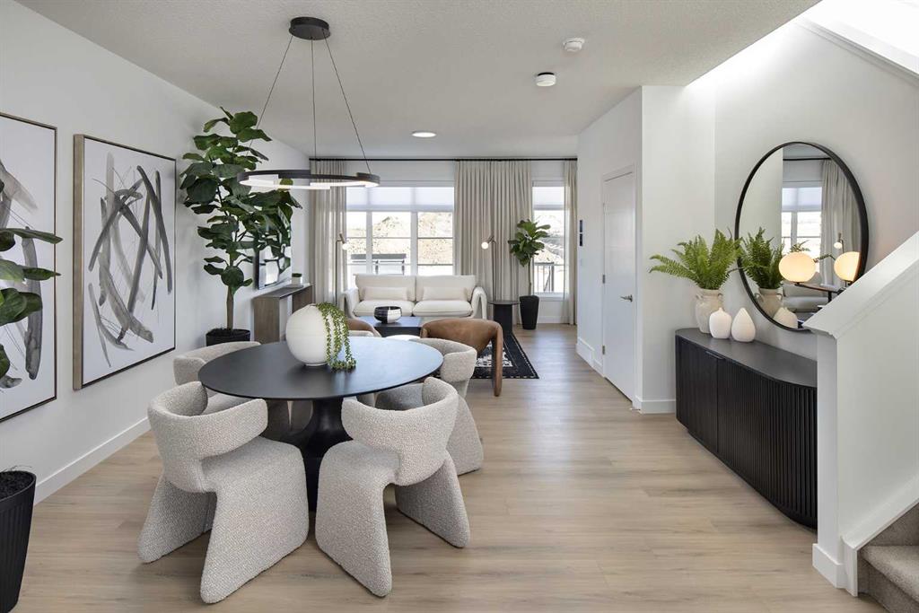 **BEAUTIFUL NEW SHOW HOME ** MOVE IN THIS SPRING 2026 **CONVENIENT SIDE ENTRY** Located in Southeast Calgary, Heartwood blends modern living with natural beauty and thoughtful planning. Get ready to be a part of a vibrant, growing community built for today and tomorrow. It will include 1 future school site, 3 planned parks and green spaces, 1 wetland and pond area and 4 acres of planned commercial retail. From peaceful wetlands to open green spaces, Heartwood offers residents the chance to connect with nature right outside their door. Parks, paths and natural areas are designed to enhance everyday living-whether it's morning walks, weekend picnics or evening strolls. Just imagine yourself living in Jayman BUILT'S brand-new floor plan, The ASPEN. Featuring a professionally designed colour palette, you are invited to explore over 1500+sqft of nature-inspired design. Stepping into the home, you are greeted with a wonderful visual from front to back, with an expansive sight line that maximizes every inch. Okanagan Pine Hills Luxury Vinyl Plank flooring graces the main floor, offering a seamless transition from space to space. The Alpine Stone elevation complements the interior selections as you tour the designated dining room into the bright rear kitchen with a central island. Sleek stainless steel appliances elevate the space, including a Whirlpool refrigerator with icemaker and internal water, an electric slide-in smooth-top range, a Panasonic microwave with trim kit, and a Broan power pack built-in cabinet hood fan. Stunning quartz countertops, Blanco silgranite undermount sink, soft-close hinges with 48" uppers and 2 1/2 inch sub moulding reflect nicely with the selected EXTRA Fit & Finish. A functional pantry and powder room complete this level, with a quaint mud room near the back of the home that opens up to your 10x10 deck. Explore the upper level, which features three sizeable bedrooms, including the Primary, with a generous private 3pc en suite with a sliding glass door shower and a spacious walk-in closet. You will also discover a convenient 2nd-floor laundry and full bath for family and guests on this level. The lower level boasts a raised 9ft basement ceiling height and a 3-pc rough-in for plumbing, while the exterior of this home features a durable Front Hardie Board exterior and BTRboard Exterior Wall System. Jayman's standard inclusions feature Core Performance with 10 Solar Panels, BuiltGreen Canada standard, an EnerGuide Rating, UV-C Ultraviolet Light Purification System, High-Efficiency Furnace with MERV 13 Filters & HRV unit, Navien Tankless Hot Water Heater, Triple-Pane Windows, and Smart Home Technology Solutions! All this with a DOUBLE DETACHED garage to complete the package. Earn money every month with the Showhome Leaseback Program! Designer upgrades also include wallpaper, window coverings and landscaping.