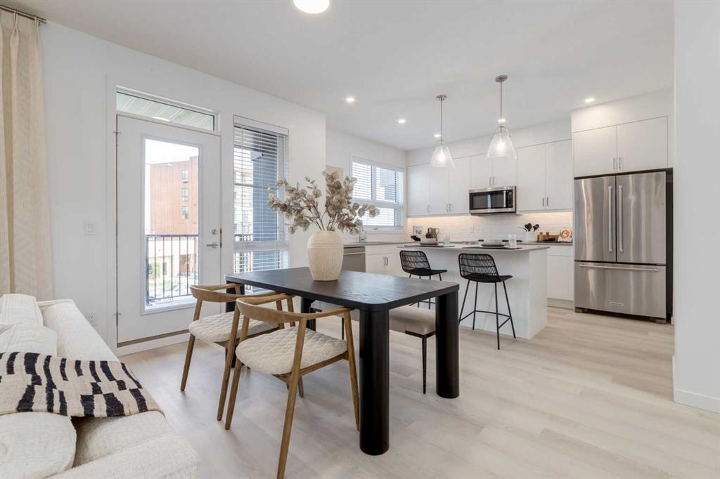 The Village at Trinity Hills (Wolf Run - Phase 2) is an immaculately designed urban town-home community, ideally located along the iconic Paskapoo Slopes in Southwest Calgary. Your new residence is nestled within 160 acres of an environmental reserve with 17 kilometres of hiking and biking trails and amazing views of COP/WinSport. In addition to being surrounded by nature, you’re only a 5 minute walk from all of the urban conveniences the community has to offer (Save-On-Food, PetSmart & Cobbs Bread, to name a few). The Village is less that 1 hour to the Rocky Mountains, yet just 15 minutes to downtown. Your new PINE unit has 1613 sq.ft. (RMS Measurement) of pristine designed living space, with 3 bedrooms, 2.5 bathrooms, formal entry, second floor laundry, chef quality kitchen, 2 large private front facing patios, secluded office area, and a double car attached garage. Your new home comes complete with w/ quartz counters, designer tile, s/s appliances, luxury plank flooring, modern fixtures and finishes, and central A/C. The Village at Trinity Hills is built by Metropia, one of Canada’s top multifamily developers with a pristine reputation for innovation and quality construction. All photos are of our PINE Show home, and not the actual unit. Taxes, lot size, and possible HOA have yet to be determined. This unit is currently under construction, with quick possession available btw end of September to end of October 2025. Please take note, the RMS measurements on MLS are larger than the builder floor plans in the sales center, as they reflect the actual measured size of the built units. Unlike typical cases where measurements decrease post-construction, ours increased. Please contact your agent today for more information regarding our sales center hours, all of the available lots, floor plans, pricing and finishing specifications. This home already has its finishing specifications and upgrades selected. Price includes unit, upgrades and GST.