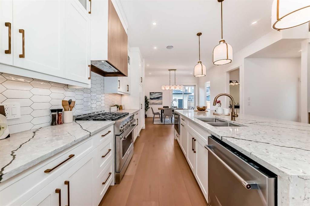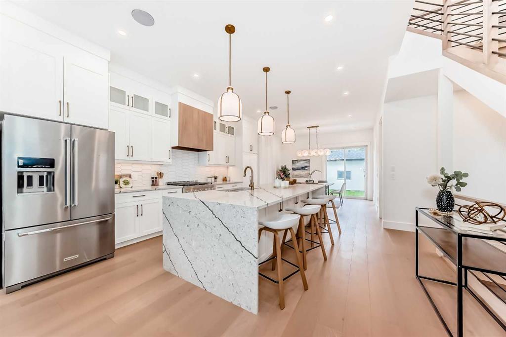 ** Open House: Saturday, Feb. 18th 3-5pm ** Welcome to 2426 53 Ave this home is a perfect blend of modern design and community living. Nestled in one of the area’s most desirable and family-friendly neighborhoods, this newly built home offers the ideal combination of style, functionality, and location. With over 1,900 sq. ft. above grade, this thoughtfully designed property features 4 bedrooms and 3.5 bathrooms, providing ample space for both everyday living and entertaining. Step inside to an open and welcoming living room complete with custom built-ins and a cozy fireplace – perfect for family gatherings or quiet evenings in. At the heart of the home is the gourmet kitchen, outfitted with full-height cabinetry, a large quartz island, high-end appliances, and sleek quartz countertops. Adjacent to the dining area, sliding patio doors open to a sunny back deck, seamlessly blending indoor and outdoor living. The main floor also includes a practical mudroom and a stylish powder room for added convenience. Upstairs, the primary suite offers a true retreat with a vaulted ceiling, feature wall, walk-in closet, and a spa-inspired ensuite complete with soaker tub, dual vanities, and a walk-in shower. Two additional bedrooms, a full bathroom, laundry room, and built-in desk make the upper level as functional as it is beautiful. The fully finished basement offers even more living space, featuring a second living room with built-ins and electric fireplace, wet bar, home gym, fourth bedroom with walk-in closet, and a full bathroom – perfect for guests, teens, or extended family. Outside, enjoy a landscaped and fenced backyard with space to relax or entertain, and a double detached garage for secure parking and additional storage. Located in a vibrant community with parks, schools, and amenities nearby, this home also offers quick and easy access to Crowchild Trail—making your daily commute or weekend plans stress-free. Measurements and photos are from unit next door (2424 53 Ave SW).