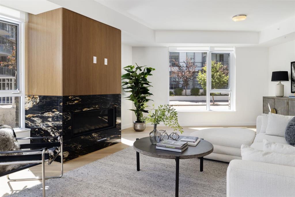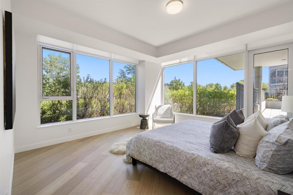 Wonderful opportunity to live in a one of a kind boutique building consisting of only 7 homes in a four storey concrete and steel luxury building set on the banks of Prince's Island, Eau Claire and the Bow River. This top of the line ground floor open layout condo consists of 3 spacious bedrooms, all with their own ensuite and 1/2 bath with views that go forever. This prime location ground floor home has a huge enclosed wrap around patio allows the new owner to live with the comfort and space of a large bungalow but with the security of lock and go and no maintenance for easy travel. This new never been lived in condo has everything your next home awaits with Subzero and Wolf appliances, side x side laundry and of course 2 side x side heated underground parking stalls and separate storage locker. Come by as see what you've always been looking for. Perfect for ones looking for a long term livable home without sacrificing on size or outdoor space!