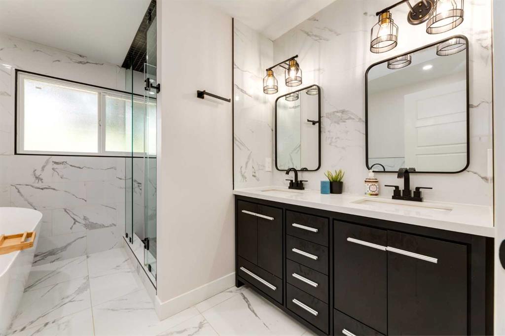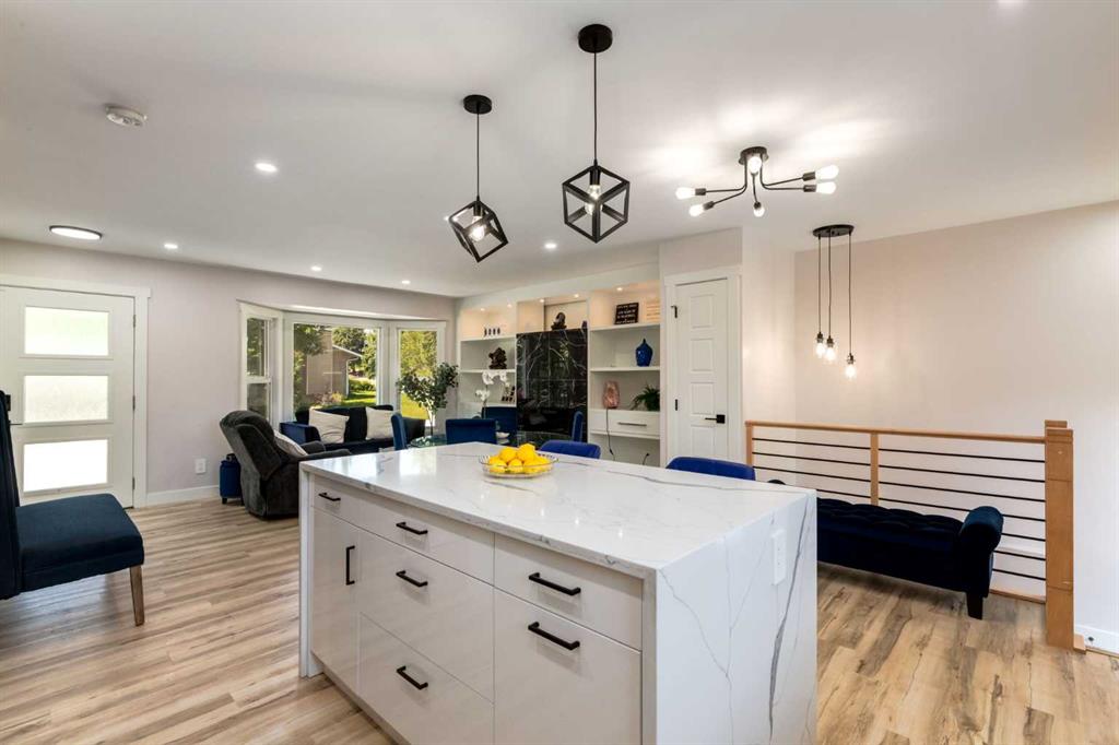 Remarkably designed inside & out ~ This fully finished Canyon Meadows home offers a modern open-concept layout, situated on a huge 8,525 sq ft lot with an unbeatable backyard, and OVERSIZED, HEATED GARAGE w/ Attached WORKSHOP and RV parking. Great curb appeal welcomes you with mature trees, garden beds beneath the front windows, a paved stairway, and a long side driveway. Inside you instantly appreciate how bright & open this home is, with an organized front closet and rich vinyl plank flooring that flows throughout. The modern Living Room is anchored by a marble-tiled fireplace surrounded by stunning built-ins with lighting, and big bay windows that let the sunshine flood the main floor. The luxurious kitchen hosts crisp white cabinetry, stone counters, SS appliances, a full tiled backsplash, eat-up island, perfectly-placed window to enjoy backyard views while doing dishes, upgraded lighting, AND an organized Pantry. The Primary Bedroom offers a Walk-In Closet with wood shelving that flows through to an amazing 5-piece Ensuite. Equipped with elegant dual vanities, a stand-alone soaker tub, and fully tiled O/S walk-in shower! Completing the main-level is a 2nd Bedroom, 4-pc Bathroom with more gorgeous tile, and a Linen Closet for added organization. Downstairs you’ll find a massive Rec Room with a focal point electric fireplace, custom wet Bar with a sink and great storage, TWO more large bedrooms with closets, a versatile Home Office or Gym, a 3-piece bath with a corner walk-in shower, designated Laundry Room with a window, and plenty of storage! Outside, enjoy your own little oasis - featuring a stamped concrete Patio off the back door, mature landscaping that includes huge picturesque trees, solid wood fencing for added privacy, and extensive parking for your friends, family, RV AND toys! All this is tucked in a walkable location close to excellent schools, bus stops and transit, and all the everyday amenities you need. This home checks all the boxes for style, function, and location - are you ready to come fall in love with your new HOME?