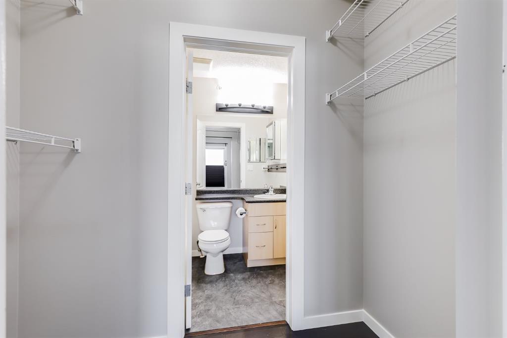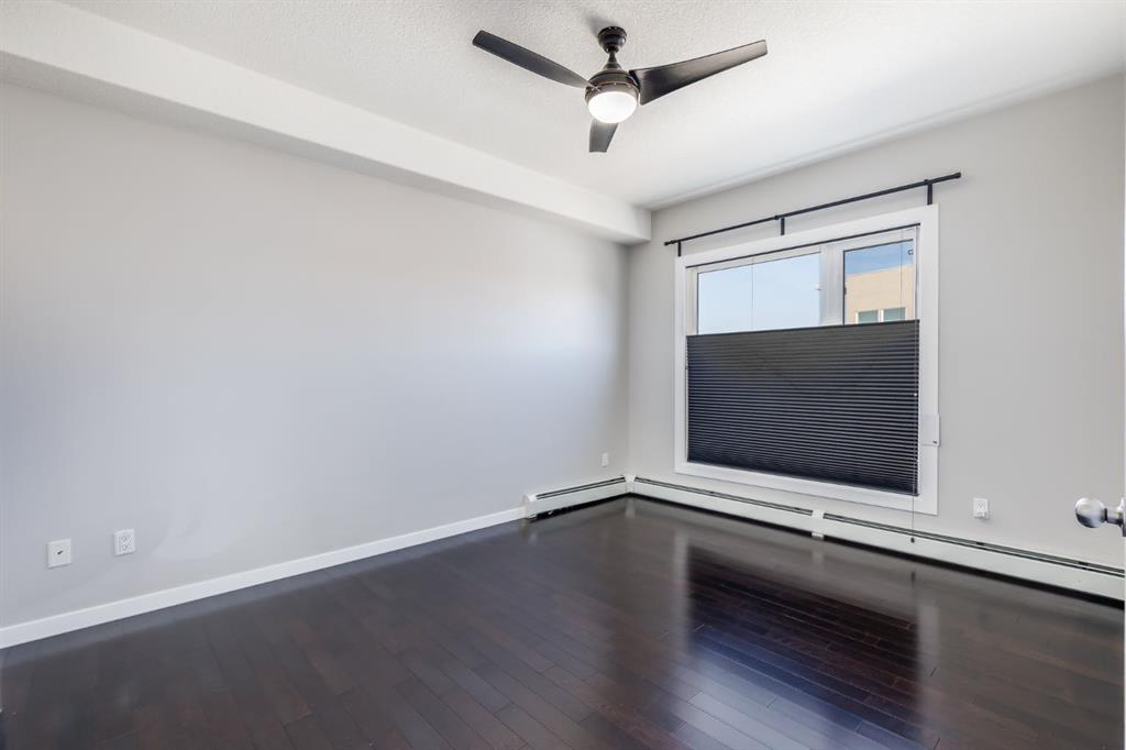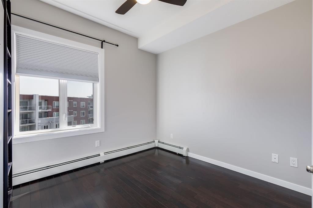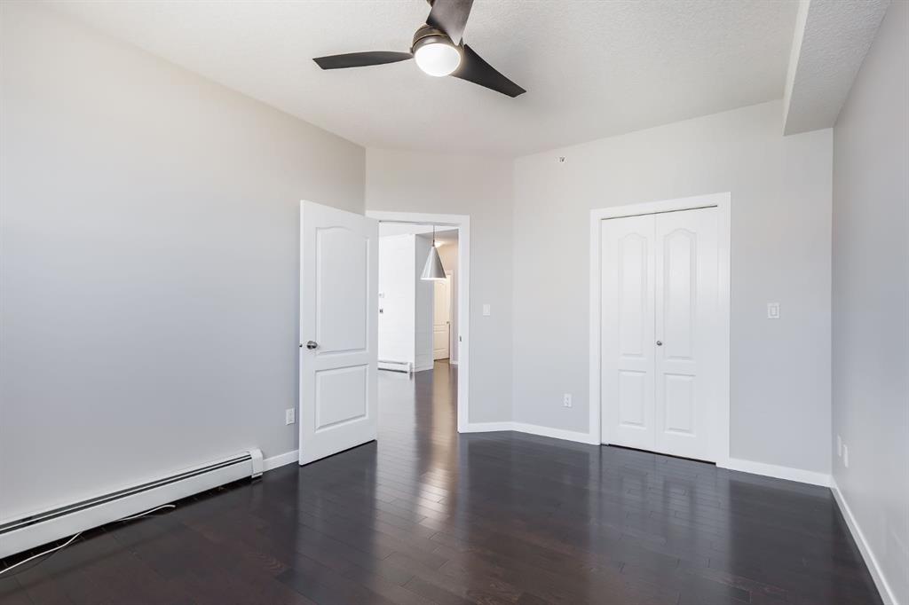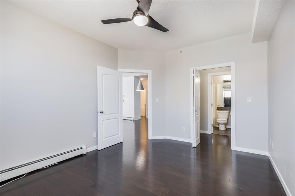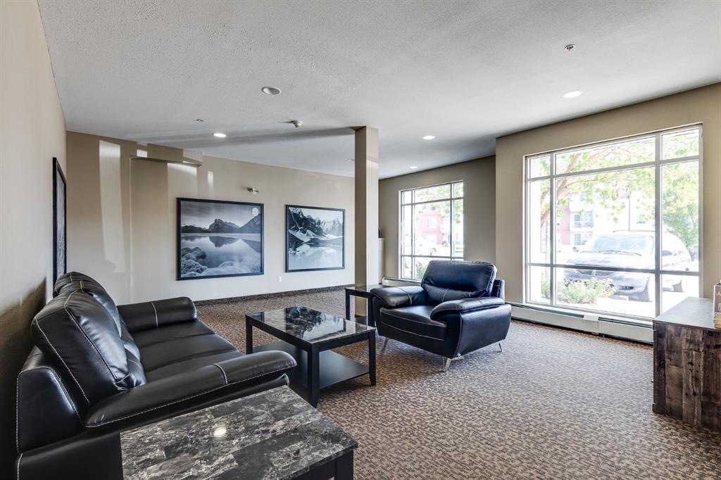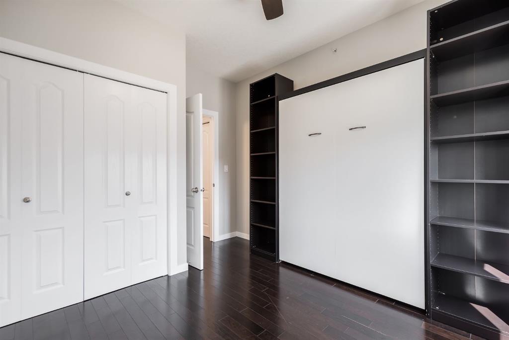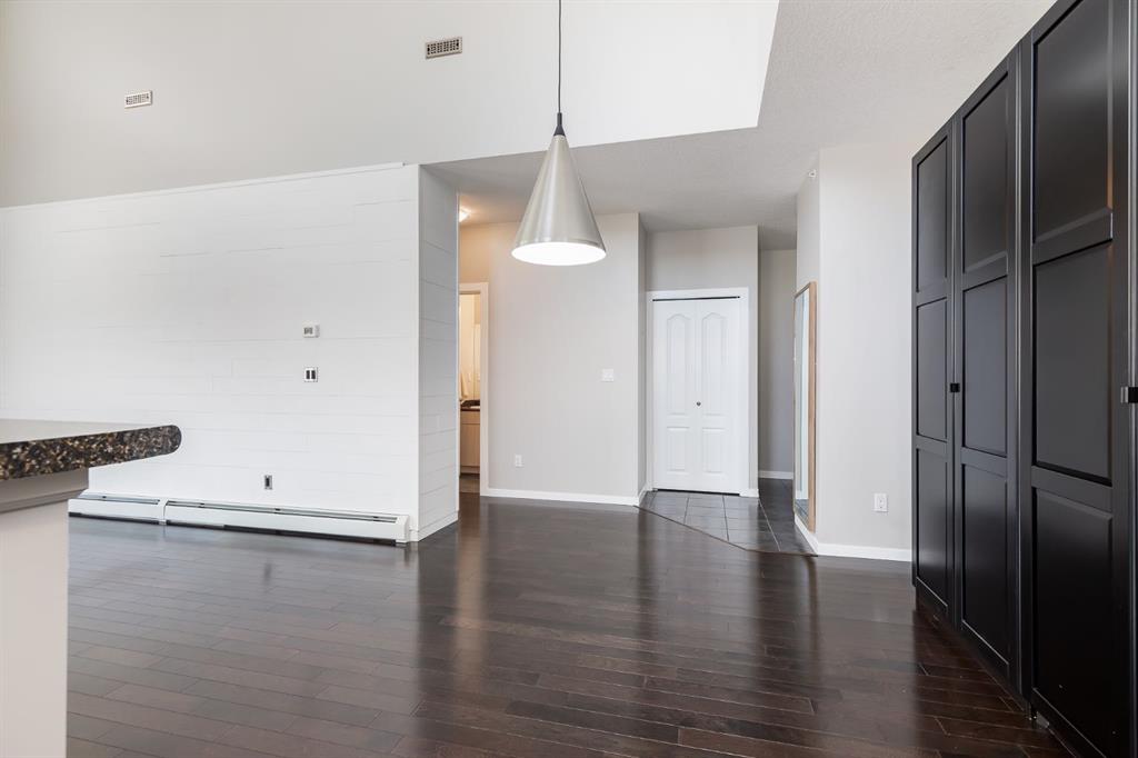 Gorgeous Top Floor, Corner Unit with Soaring Cathedral Ceilings, Large Private Deck, and has an Underground Parking Stall. ** This Fantastic 2 Bedroom, 2 Bathroom Condo with No Carpets has 960 sqft of Amazing Living Space and is Ready for a QUICK POSSESSION. When you enter this Condo, you will immediately notice the Private Foyer that has a Large Storage Room off the entry. The HARDWOOD FLOORS welcome you to the Main area that has the EXPANSIVE 18' HIGH CATHEDRAL CEILING that allows lots of Natural Light from the Extra Windows. The Living Room has a great Shiplap Wall and Opens to the Oversized Deck that is private and has great space for your Patio Furniture. The Kitchen has a Large Island and Newer Stainless Steel Appliances, and opens to the Dining Area that has a Built in Wall Unit for extra storage. The Primary Bedroom is 14'1" x 11'3" and has a Walk through Closet to the 4 pc Ensuite. Bedroom 2 is 10'3" x 12'1", is located on the opposite end of the Condo and includes a Murphy Bed for your Guests with the 4 pc Main Bathroom steps away. There is also a Laundry Room. The Condo includes an Underground Parking Stall. This Great Complex is located beside Genesis Place which is perfect for Lifestyle Living if you are active and want swim, skate, work out in the Gym, or partake in the many classes provided. It is also close to Transportation, and Dining. Condo fees of $589.85 include all your utilities except electricity. Pets permitted with Board Approval - 2 small pets both no more than 25 lbs each or 1 medium at 40 lbs.