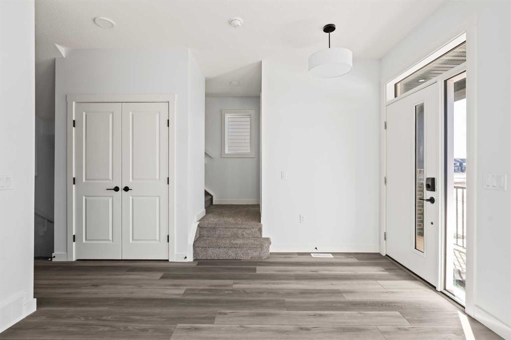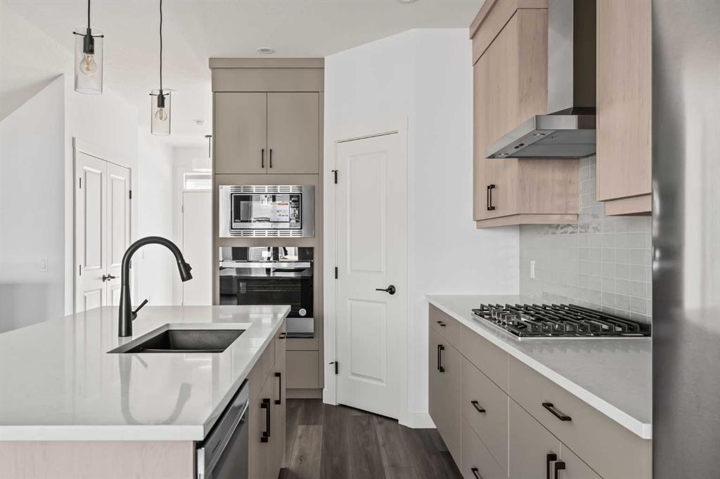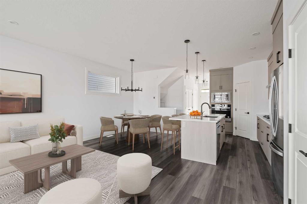 The Carlisle 2 is a thoughtfully designed home offering nearly 1,900 sq. ft. of beautifully planned living space, complete with 3 bedrooms, 2.5 bathrooms, a main floor office/flex room, an upper-level bonus room, and a full basement. Perfect for families or professionals, this home combines functionality with modern style. The open-concept main level is bright and inviting, with 9-foot ceilings, luxury vinyl plank flooring, and oversized front and rear windows that fill the home with natural light all day long. A versatile den/flex room on the main level makes the perfect home office, study, or playroom. At the heart of the home, the gourmet kitchen features full-height cabinetry, quartz countertops, a spacious corner pantry, and a large central island with a flush eating bar. A premium stainless steel appliance package is included, complete with a built-in oven and microwave, chimney hood fan, and cooktop. The kitchen overlooks both the dining area and the great room, making it the ideal space for entertaining or everyday family living. A rear entrance leads to the private backyard, complete with a BBQ gas line for everyday convenience and the main level is complete with a 2pc powder room. Upstairs, a central bonus room separates the spacious primary suite from the secondary bedrooms, providing privacy and flexibility. The sun-filled primary retreat includes a walk-in closet and a 4-piece ensuite with dual sinks and a walk-in shower. Two additional bedrooms, a full bathroom, and a convenient upper laundry room complete this level. The basement offers endless opportunities for future development, with 9’ foundation walls, rough-ins for a 4-piece bathroom and sink, oversized windows, and private backyard access via the side entrance. Located in the vibrant community of Seton, this brand-new home will be move-in ready this fall and is just steps from countless amenities and the South Calgary Health Campus. Builder warranty and Alberta New Home Warranty allow you to purchase with peace of mind - start enjoying your brand new home this fall! Note: Home is under construction. Photos are of a showhome model and not an exact representation of the property for sale.
