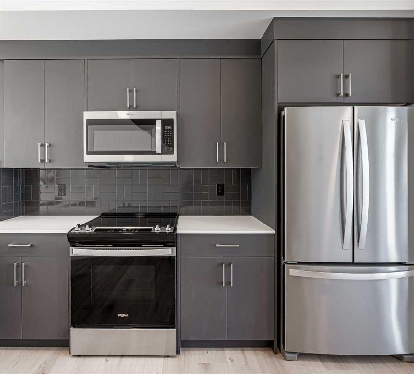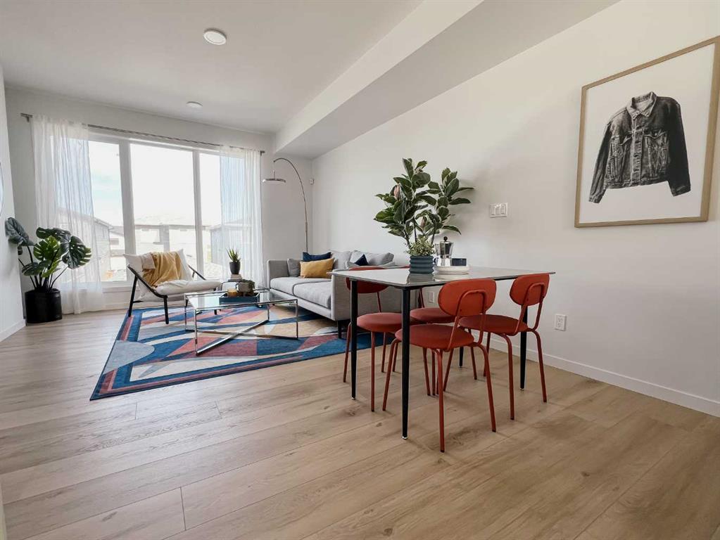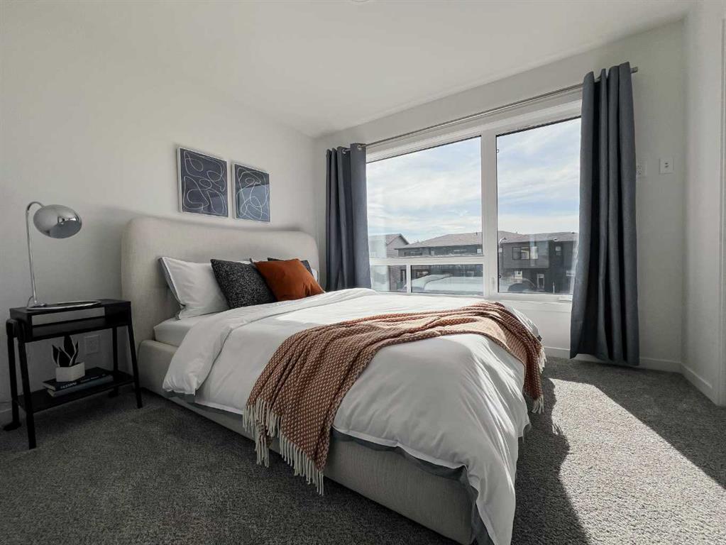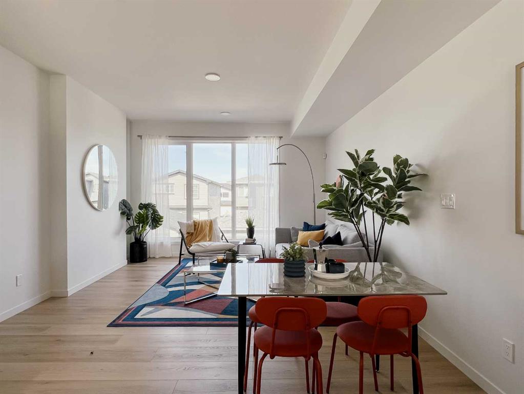 **Open House Sunday 2pm to 4pm - PLEASE GO TO THE SHOWHOME FOR ACCESS** Welcome to your dream home! This beautiful two-bedroom condo, backing onto serene green space, offers a perfect blend of comfort and style. With every detail thoughtfully curated. Enter the home to find a quaint flex space and foyer. Up a short flight of stairs to the main floor which features a living room, dining area, and kitchen area complemented by a half bath. Oversized windows on every level provide abundant natural light and stunning views. The upper floor includes convenient laundry and offers an additional flex space, which can be converted into a full washroom if you choose. The single-car attached garage boasts an oversized overhead door. The home includes rough-in gas line for a BBQ, roughed-in air conditioning, and luxury finishes like vinyl plank flooring, quartz countertops, and your choice of Linen or Slate color palettes. With three floors of above-ground living space, this condo is a must-see! Contact us today to make it yours! ( PLEASE note* photos are of similar models but there are not an exact replication of the home)