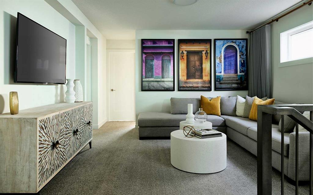 Welcome to The Oxford by Brookfield Residential - a stunning, fully detached home situated on a Conventional Lot (not zero lot) that perfectly combines thoughtful design, functional living, and modern style. Offering nearly 2,000 sq. ft. of beautifully crafted living space above grade, plus a full basement with its own private side entrance, this home provides incredible flexibility for your lifestyle or future development potential. Situated on a conventional lot with side yards on both sides, a West backyard for optimal sunshine, and spanning over 3,000 sq. ft., this property offers an abundance of both indoor and outdoor living space - ideal for family life, entertaining, or creating your dream backyard retreat. The open-concept main floor is bright and inviting, featuring a spacious kitchen that seamlessly connects to both the great room and dining area, creating the perfect setting for gatherings of any size. The kitchen is a true showpiece, complete with a suite of stainless steel appliances, including a gas range and chimney hood fan, along with an oversized pantry for added storage. The great room at the front of the home spans the entire width with a wall of windows overlooking the front street. A main level office, mudroom, and 2-piece powder room add everyday functionality and convenience. On the upper level, a central bonus room separates the luxurious primary suite from the secondary bedrooms, providing privacy and a natural flow to the layout. The primary bedroom features a large walk-in closet and 4-piece ensuite with dual sinks and a walk-in shower. Two additional bedrooms, a full bathroom, and a laundry room complete the upper level. The basement, with its private side entrance, awaits your personal touch with rough-ins in place. Whether you envision a legal suite (subject to local municipality approval), gym, media room, or additional living space, there is ample room for a large living area, bedroom and bathroom. Outside, the conventional lot provides endless potential for outdoor living with the convenience of a traditional lot design. The property is complete with a double concrete parking pad - providing significant savings for future garage development. Backed by Brookfield’s builder warranty and Alberta New Home Warranty, you can purchase with confidence knowing your investment is protected. **Please note: Property is under construction and photos are not an exact representation of the property for sale.