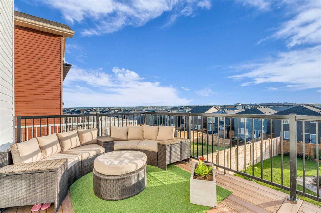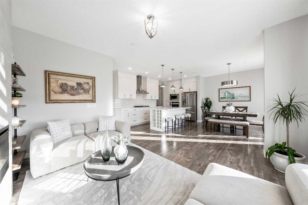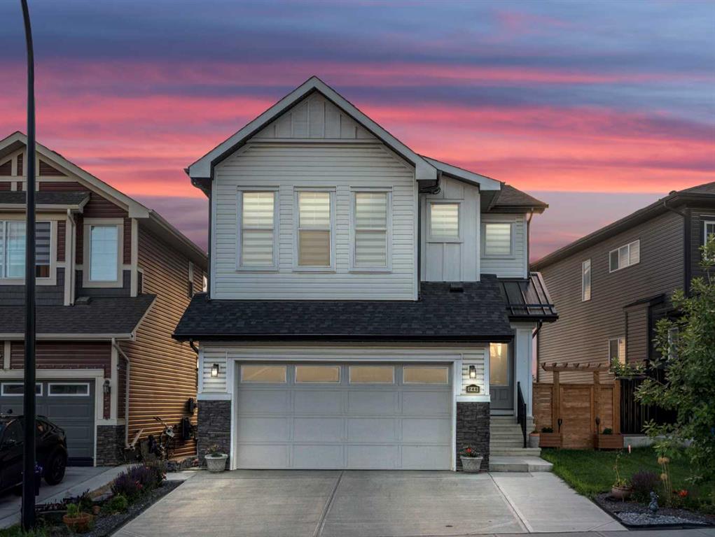 Welcome to this beautifully designed and fully developed 2-storey walk-out home located in the sought-after community of Livingston NW. Situated on a spacious 5,791 sq. ft. lot, this 6-bedroom, 4.5-bathroom home offers over 2,550 sq. ft. of total living space, providing exceptional functionality for large families or multi-generational living. The main floor features an open-concept layout with a gourmet kitchen complete with quartz countertops, full-height cabinetry, gas cooktop, built-in wall oven and microwave, chimney hood fan, and a separate spice kitchen with additional cabinetry and second sink. The spacious living and dining areas lead to a raised deck overlooking the fully landscaped and fenced backyard. A versatile flex room on the main floor is ideal for a home office, guest bedroom, or playroom. Upstairs offers a large bonus room, convenient upper-floor laundry with built-in shelving, and four generously sized bedrooms. The primary suite includes a walk-in closet and a spa-inspired ensuite featuring double vanities, a soaker tub, and separate shower. A second bedroom includes its own private ensuite and walk-in closet, while two additional bedrooms share a full bathroom. The fully finished walk-out basement features 9-foot ceilings, a large recreation area with backyard access, a sixth bedroom, full bathroom, and separate laundry area—ideal for extended family living. Additional highlights include a double attached garage with wrap-around exterior lighting, an extra cement-paved front parking stall, two high-efficiency furnaces, central air conditioning, and close proximity to parks, walking paths, transit, schools, shopping, and major roadways. An excellent opportunity to own a spacious, move-in-ready walk-out home in a growing NW community. Book your private showing today.