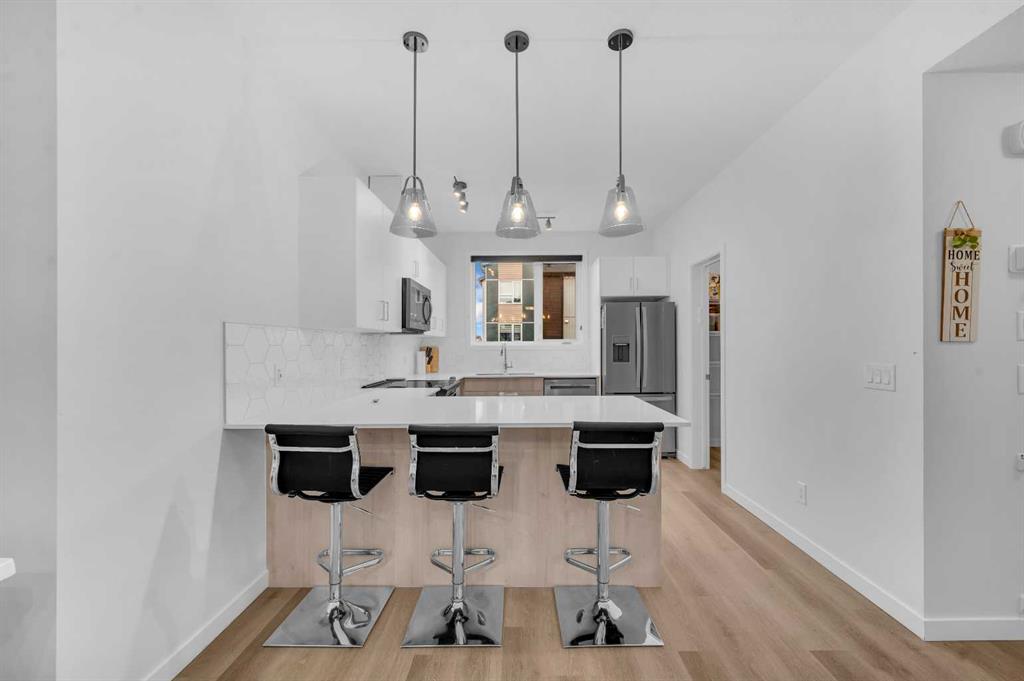 Welcome to this stunning corner-unit townhouse in the vibrant community of Redstone! This modern 3-storey home offers over 1,545 sq. ft. of living space, featuring 3 spacious bedrooms, 2.5 bathrooms, and a tandem double attached garage with an additional driveway parking spot — perfect for families or professionals seeking space and convenience. Built in 2023, this home still feels brand new and comes with low condo fees ($253.12/month) that cover exterior maintenance, snow removal, landscaping, and garbage services. Step inside to discover a bright, open-concept floor plan with luxury vinyl plank flooring, large windows, and a U-shaped kitchen designed with modern cabinetry, stone countertops, stainless steel appliances with a fridge water line, pendant lighting, and plenty of counter space. The main living area flows seamlessly into the dining and living rooms, leading out to a spacious balcony with a BBQ gas line — ideal for relaxing or entertaining outdoors. Upstairs, you’ll find three well-sized bedrooms, a convenient upper-floor laundry, and a primary suite with a standing shower and elegant finishes throughout. Every detail has been thoughtfully chosen — from stylish blinds to modern tile work and quality materials throughout. Located in the heart of Redstone NE Calgary, this townhouse offers easy access to Country Hills Blvd, Métis Trail, and Stoney Trail, as well as parks, playgrounds, shopping, transit, and a future school site currently in planning. This move-in-ready home combines comfort, style, and practicality — a fantastic opportunity in a fast-growing community. Don’t miss your chance to own this corner gem in Redstone!