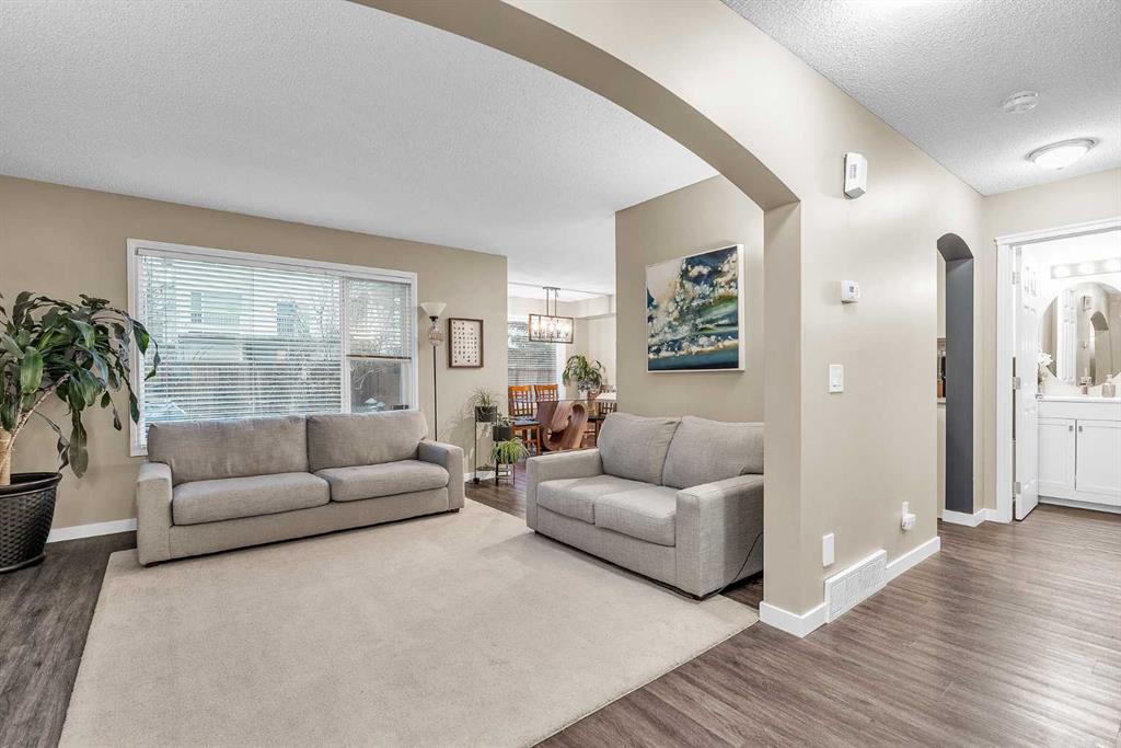 Welcome to Your Family’s Dream Home in Evanston Tucked away in a peaceful cul-de-sac, this immaculate duplex offers over 2,100 sqft of beautifully developed living space—perfect for growing families. Step inside to a vaulted entryway that creates an airy, grand welcome. Natural light pours in, setting the tone for the bright and inviting main floor, where spacious living and dining areas flow seamlessly into the backyard—ideal for entertaining or letting the kids play freely. The kitchen features quartz countertops, a stylish new backsplash, all new appliances and hood fan (with the dishwasher being original), and upgraded lighting that adds a modern touch. A convenient guest bathroom with an upgraded vanity and easy access to the backyard complete the main level. Upstairs, the sun-filled primary suite offers a walk-in closet, en suite, and a private balcony—the only duplex on the street with this feature. Two additional generously sized bedrooms provide plenty of space for family or guests. The basement boasts a large rec room with durable LVP flooring, perfect for playtime, movie nights, or a home gym. Recent upgrades include a new roof and siding in 2025, and a washer and dryer upgraded in 2023. Located in one of Calgary’s most desirable family communities, Evanston is known for its excellent schools, abundant green spaces, nearby shopping, and quick access to major roads. This home is within walking distance to local schools, parks, scenic walking paths, and expansive green spaces—ideal for families who value convenience and outdoor living. Don’t miss out—schedule your showing today and see why this home stands out from the rest!