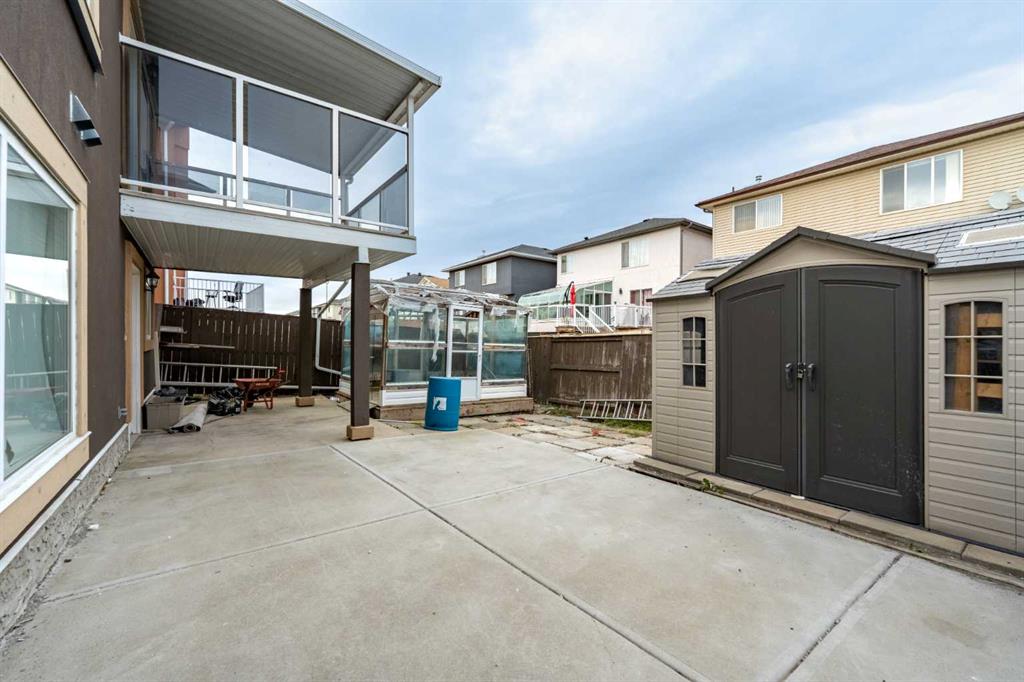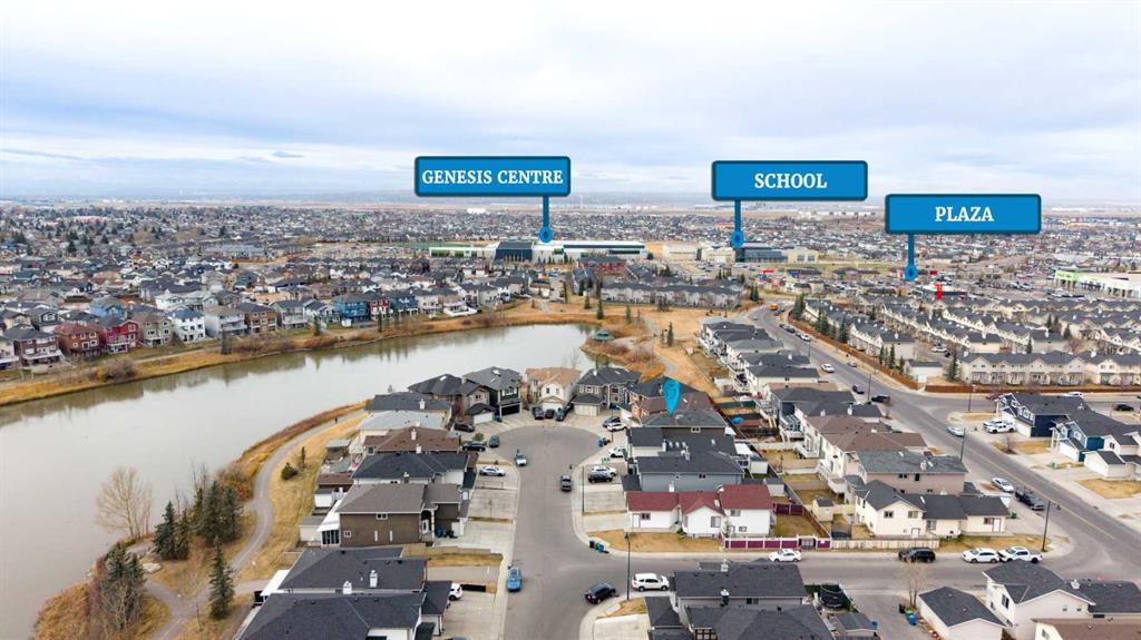 Welcome to this beautifully updated 2-storey home located on a quiet street in Taradale, featuring a WALKOUT BASEMENT with illegal SUITE. The home offers an inviting FRONT PORCH and a double attached garage. Step into the bright living room with soaring ceilings, seamlessly flowing into the dining area. The modern kitchen is a chef’s dream with a Kitchen island, GAS RANGE, and pantry. The adjacent family room boasts a cozy fireplace and access to a balcony—perfect for entertaining or relaxing. A den/bedroom and a full 4-piece bathroom completes the main floor. The upper level features a HUGE MASTER BEDROOM with a walk-in closet and luxurious 5-piece ensuite. Three additional generous sized bedrooms share a 4-piece full bath. All the bedrooms have built in closet organizer. Updated vinyl plank flooring, lighting fixtures, and fresh paint gives the home a contemporary feel throughout. The ILLEGAL BASEMENT SUITE offers 2 spacious bedrooms, a full kitchen, a huge living/rec room, and a 4-piece bath—ideal for extended family or rental income. Additional features include, Roof replaced in 2025, Stucco exterior with cement walkway around the home and Low-maintenance backyard with a garden shed and a greenhouse. STEPS AWAY FROM A BEAUTIFUL POND and community amenities such as the GENESIS CENTRE (Recreation Centre with swimming pool and sports facilities) and PUBLIC LIBRARY. Walking distance to the SADDLE TOWNE CIRCLE SHOPPING COMPLEX, Saddle Towne LRT station, and the nearest bus stop is approximately 1 minute away. Close to all levels of schools, including NELSON MANDELA HIGH SCHOOL. This home perfectly combines modern updates, functional spaces, and an unbeatable location—don’t miss out!