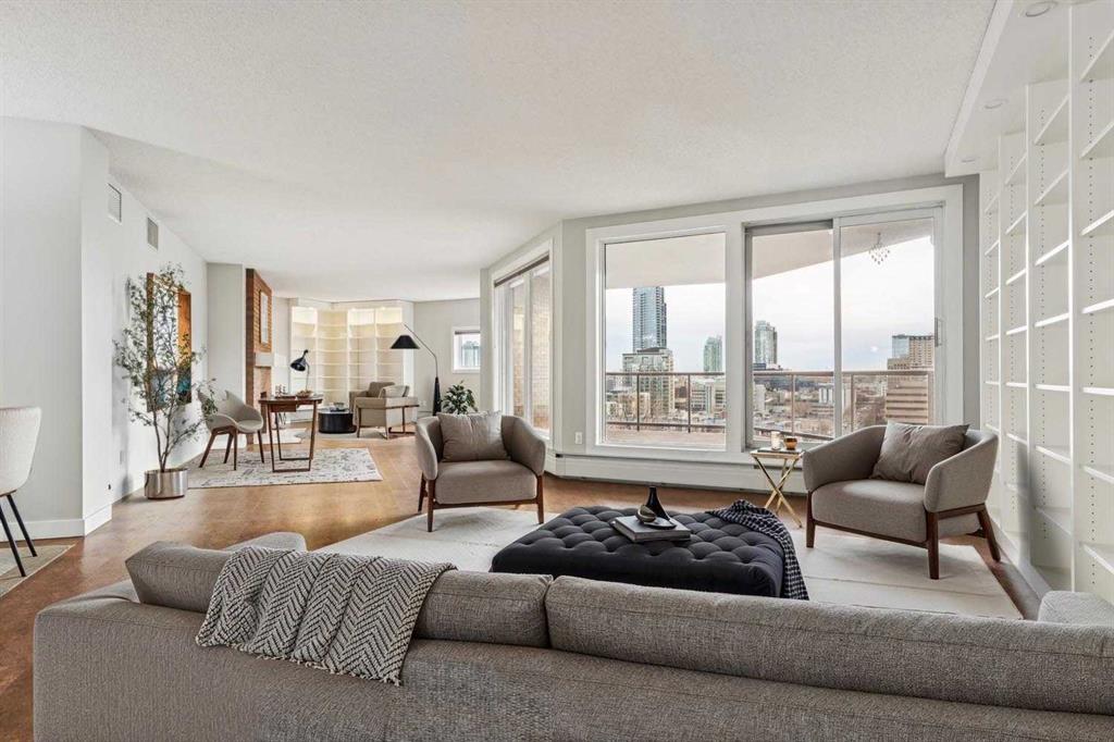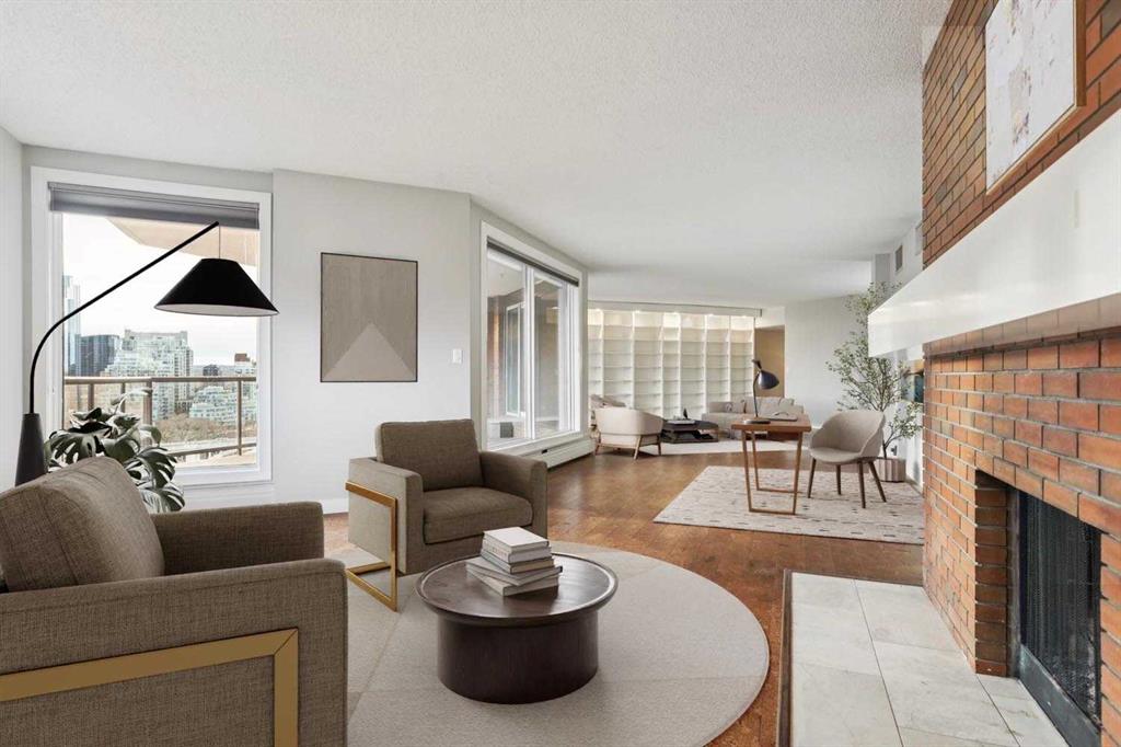 Welcome to Discovery Hill, an exclusive luxury condominium residence perfectly perched in the prestigious community of Crescent Heights. Overlooking the river valley with unobstructed, panoramic views of the downtown skyline, this remarkable home presents a rare opportunity to experience elevated urban living at its finest. Spanning an impressive 2,294 sq ft of single-level living space, this residence blends refined style with exceptional scale. Flooded with natural light from oversized floor-to-ceiling windows, the open-concept design frames the cityscape from nearly every room, creating a breathtaking backdrop day and night. At the heart of the home is its stunning living and dining area—an expansive, elegant setting ideal for both grand entertaining and intimate gatherings. A wood-burning fireplace infuses warmth and sophistication, while the seamless flow highlights the dramatic skyline beyond. The updated chef’s kitchen is beautifully appointed with a large central stone island, ceiling-height cabinetry, newer appliances, and a full walk-in pantry. Designed for both effortless cooking and everyday connection, it offers exceptional functionality and style. Retreat to the impressive primary suite, a serene sanctuary featuring a luxury 5-piece spa-inspired ensuite, generous walk-in closet, and soothing wood-burning fireplace. Step onto your private balcony to enjoy tranquil mornings or unwind with sweeping skyline views—a truly indulgent escape. Two additional spacious bedrooms complete the home, including one enhanced with a versatile Murphy wall bed. A dedicated laundry room with sink and additional in-unit storage add everyday convenience. Cork flooring throughout the home provides comfort, warmth, and durability. Two underground parking stalls and premium amenities elevate the Discovery Hill lifestyle even further, featuring: A fully equipped fitness centre, a relaxing sauna, a stylish and spacious party room, perfect for hosting gatherings and also bike storage for added convenience and security. Set just moments from river pathways, Prince’s Island Park, vibrant Bridgeland cafés and restaurants, shopping, transit, and downtown, Discovery Hill offers unparalleled access with the serenity of living above it all. A home of rare scale, timeless sophistication, and captivating views—your elevated retreat in Crescent Heights awaits.