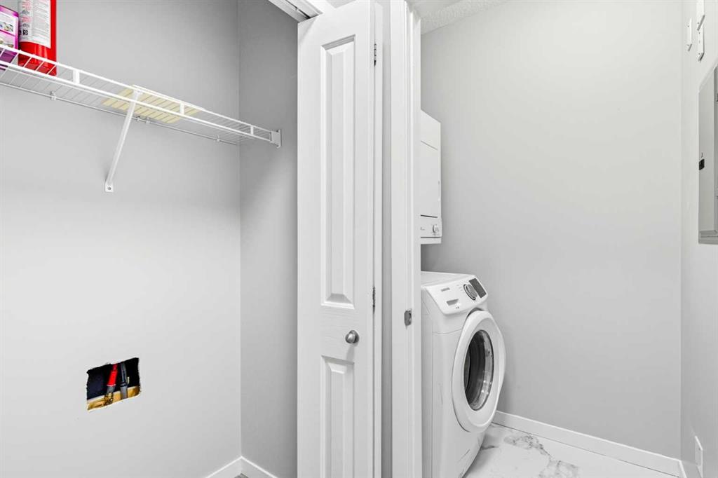This fully renovated 2-bedroom, 2-bathroom condo offers a bright, sunny living space and a private west-facing balcony with beautiful mountain and city views. The brand-new U-shaped kitchen features never-used appliances, generous counter space, and a convenient breakfast bar. The primary bedroom includes a walk-through closet and 4-piece ensuite, while the second bedroom is perfect for guests or a home office. Enjoy in-suite laundry, a storage locker, and two outdoor parking stalls. Condo fees include heat, electricity, water, and professional management. Steps to Saddletown LRT, schools, shopping, and restaurants — move-in ready and waiting for you!