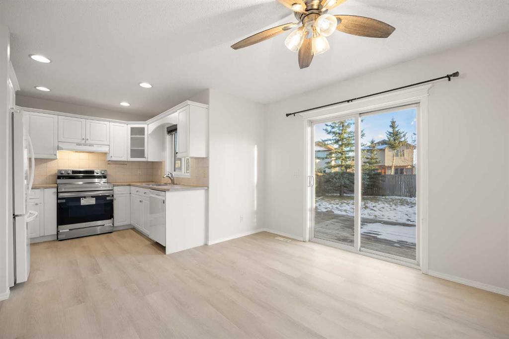 Bright 2-Storey Home Facing Park | Quiet Cul-de-Sac ,SE Backyard and Finished Basement.Welcome to this inviting 2-storey family home in Coventry Hills, ideally located on a quiet cul-de-sac and facing a small park, offering a peaceful green view right from your front door. With 3+1 bedrooms, 2.5 bathrooms, and 1,750 sq. ft. of developed living space, this home is perfect for growing families.The main level features a bright and spacious living room with a cozy gas fireplace, charming bay window, and new vinyl plank flooring, creating a warm and welcoming atmosphere. The functional kitchen flows seamlessly into a well-sized dining area, ideal for everyday meals and family gatherings. Step outside to a large deck and expansive south-east facing backyard, beautifully landscaped with garden areas, back-lane access, and plenty of space for kids, pets, and summer entertaining. A convenient 2-piece bath completes the main floor.Upstairs, you’ll find three bedrooms, including a spacious primary bedroom with walk-in closet, along with a 4-piece main bathroom.The fully finished basement adds valuable living space, featuring a large recreation room, fourth bedroom, and a 3-piece bathroom combined with the laundry area—perfect for guests, teens, or a home office.Recent upgrades include New stove, new Class 4 roof shingles (Reduce the insurance deductible),new siding, eavestrough, and gutters, new vinyl plank flooring on the main level,new carpet in bedrooms,Fresh paint throughout.Hot water tank replaced in 2023. Located in family-friendly Coventry Hills, close to schools, parks, playgrounds, shopping, and transit, with quick access to Stoney Trail, Deerfoot Trail, and the airport.