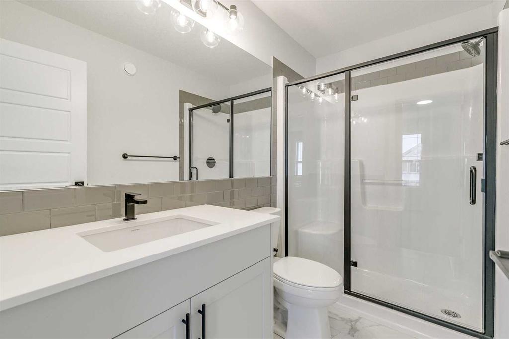 Welcome to this stylish Morrison Homes spec property located in the beautiful community of Sirocco in Pine Creek, SW Calgary. The main floor offers a functional layout with an enclosed den perfect for a home office, a bright living room, luxury vinyl plank flooring, pot lights, a walk-in pantry, and a well-appointed kitchen featuring quartz countertops throughout and a modern island ideal for meal prep and gathering. A convenient 2-piece bathroom completes the main level. Upstairs, a spacious bonus room provides an additional living area separating the three bedrooms. The upper level also includes a dedicated laundry area for added convenience. The primary bedroom features its own 3-piece ensuite with a standalone tiled walk-in shower, while the remaining two bedrooms are served by a comfortable 4-piece bathroom. The basement is currently undeveloped, offering a blank canvas for your own customization. This home also includes a separate entrance, basement suite rough-ins offering excellent potential for a future suite development (A secondary suite would be subject to approval and permitting by the city/municipality). With thoughtful design, quality finishing, and room to grow, this property delivers exceptional value in one of Calgary’s rapidly developing SW communities.