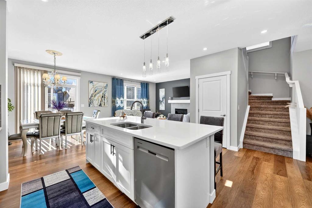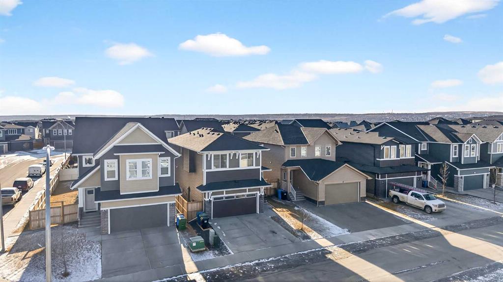 Welcome to this beautifully maintained Trico-built home (2020), offering over 3,400 sq. ft. of fully developed living space, ideally located steps away from a park in the desirable community of Evanston. With 5 bedrooms, 3.5 bathrooms, a sunny south-facing backyard, and a double attached garage, this home shows true pride of ownership throughout. The main level is thoughtfully designed for both everyday living and entertaining. At the heart of the home is the chef’s kitchen, featuring quartz countertops, stainless steel appliances, a large breakfast bar, under the counter led lighting and a walk-through pantry for added convenience. The kitchen flows seamlessly into the spacious dining area and bright living room, highlighted by a cozy gas fireplace and abundant natural light. Sliding doors off the dining room lead to the back deck, extending your living space outdoors. A private den, perfect for a home office, along with a 2-piece powder room and a functional mudroom with garage access, complete this level. Durable luxury vinyl plank (upgraded within the last 3 months), tile, and carpet flooring run throughout the home, complemented by modern lighting with auto sensors. Upstairs, you’ll find a generous bonus room ideal for family gatherings, media space, or guests. The primary suite is a true retreat, offering his and hers walk-in closets and a spa-inspired 5-piece ensuite with dual vanities, a soaker tub, and a walk-in shower. Two additional well-sized bedrooms are thoughtfully positioned on this level, along with a 4-piece bathroom. A convenient upper-floor laundry room with shelving and storage adds everyday practicality. The recently developed and fully finished basement (with permits pulled) expands the living space even further. Designed with modern halo lighting, this level features a large family room, two spacious bedrooms, and a stylish 3-piece bathroom with a walk-in shower. A high-efficiency furnace ensures comfort and energy efficiency year-round. Enjoy the sunny south-facing backyard, complete with a deck, a gas bbq line, gazebo set on a concrete pad, shed, and playset—all included. This outdoor space is perfect for relaxing, entertaining, or family enjoyment, while the north-facing front ensures balanced natural light throughout the day. Some noteworthy mentions include, all cabinet doors and toilets are soft close, and the house is located within a 30 km school zone. Recent upgrades include a new roof and siding, adding peace of mind for years to come.