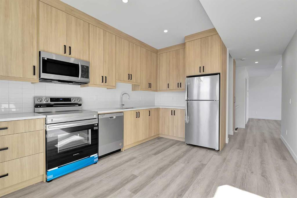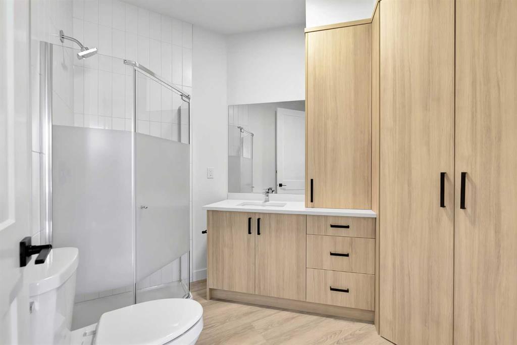 Welcome to 4905 Bowness Road NW, a brand-new residence boasting over 1,600 sq. ft. of above-grade living space and incredible versatility. Unique to this unit is the ground-level LEGAL suite, complete with a full 3-piece bathroom. This flexible space is perfect for a private home office, guest accommodation, or as a revenue-generating rental—whether long-term or short-term and Home-Base Occupation (subject to City of Calgary permitted uses). Ascend to the main living area, where stylish vinyl plank flooring and expansive picture windows create a bright, airy atmosphere. The open-concept design is anchored by a chef-inspired kitchen featuring floor-to-ceiling cabinetry, gleaming quartz countertops, premium stainless steel appliances, and a central island with bar seating. A convenient 2-piece powder room and access to the private east-facing deck round out this level, making it perfect for entertaining or relaxing with morning coffee. The upper level offers a peaceful retreat with plush carpeting and two well-appointed bedrooms, served by their own 4-piece en-suites. Beyond the luxury finishes, this building offers total peace of mind with a comprehensive New Home Warranty, including 2 year for labour and materials, 2 years for delivery and distribution systems, 5 years for building envelope protection, and 10 years for major structural components. Located steps from the Bow River, Shouldice Park, and local shops, with easy access to the Trans-Canada Highway and Stoney Trail, this home combines modern luxury, investment potential, and an unbeatable lifestyle location.