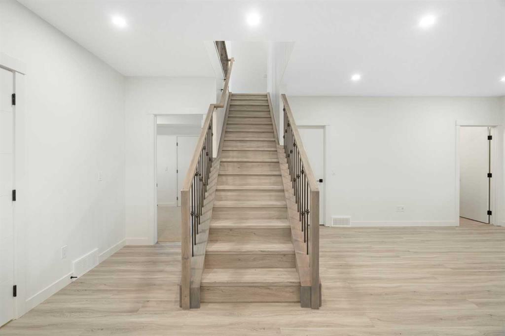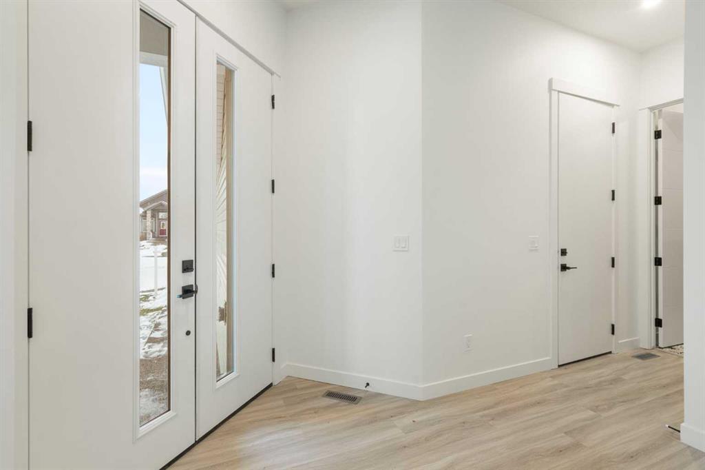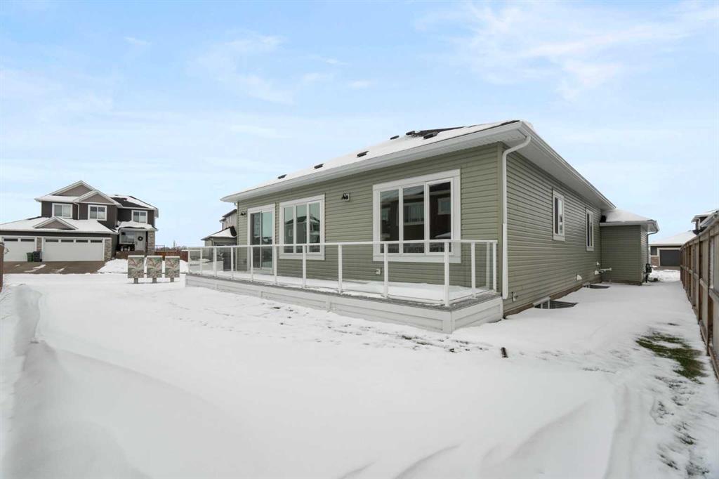 ELIGIBLE FOR FIRST HOME BUYERS GST REBATE! Spanning 3,310 Sq. Ft. of finished space, with a TRIPLE GARAGE, this brand-new home beautifully combines cozy design, thoughtful upgrades, and great value. Experience the warmth and comfort of this delightful move-in-ready bungalow situated on a corner lot, in the friendly Lakes Estates community of Strathmore, just a quick 30-minute drive from Calgary. The heart of the home is the inviting kitchen, complete with stylish gun metal stainless steel appliances, lovely quartz countertops, custom cabinetry, and a spacious island that’s perfect for family meals and gatherings. The open-concept main floor is filled with character, showcasing high ceilings, warm luxury vinyl plank flooring, and large windows that let in an abundance of natural light. With three comfortable bedrooms and two bathrooms on the main floor, plus an additional two bedrooms and two baths in the fully finished basement, this home is perfect for hosting friends, family, or guests. The cozy basement is an entertainer’s dream, featuring a wet bar, a versatile theatre/flex room, and a dedicated space for a home gym, all designed for relaxation and enjoyment. Step outside to the welcoming west-facing backyard, where you’ll find a full-width deck ideal for enjoying peaceful evenings and sunset barbecues. The tranquil pond views across the street add a touch of serenity to your outdoor space. Lakes Estates is a quiet and family-friendly neighborhood, offering plenty of green spaces and walking paths, along with easy access to Highway 1. Enjoy a smoother commute from Strathmore to Calgary, avoiding the busy city traffic.