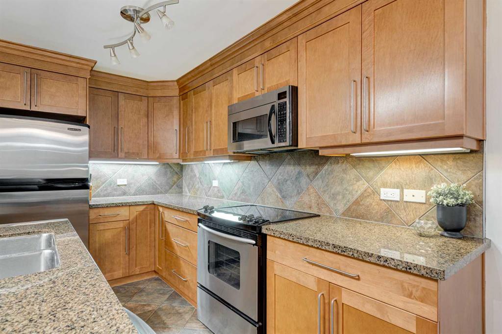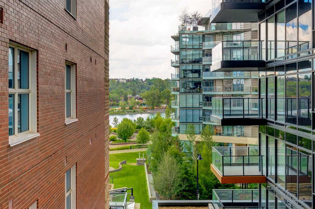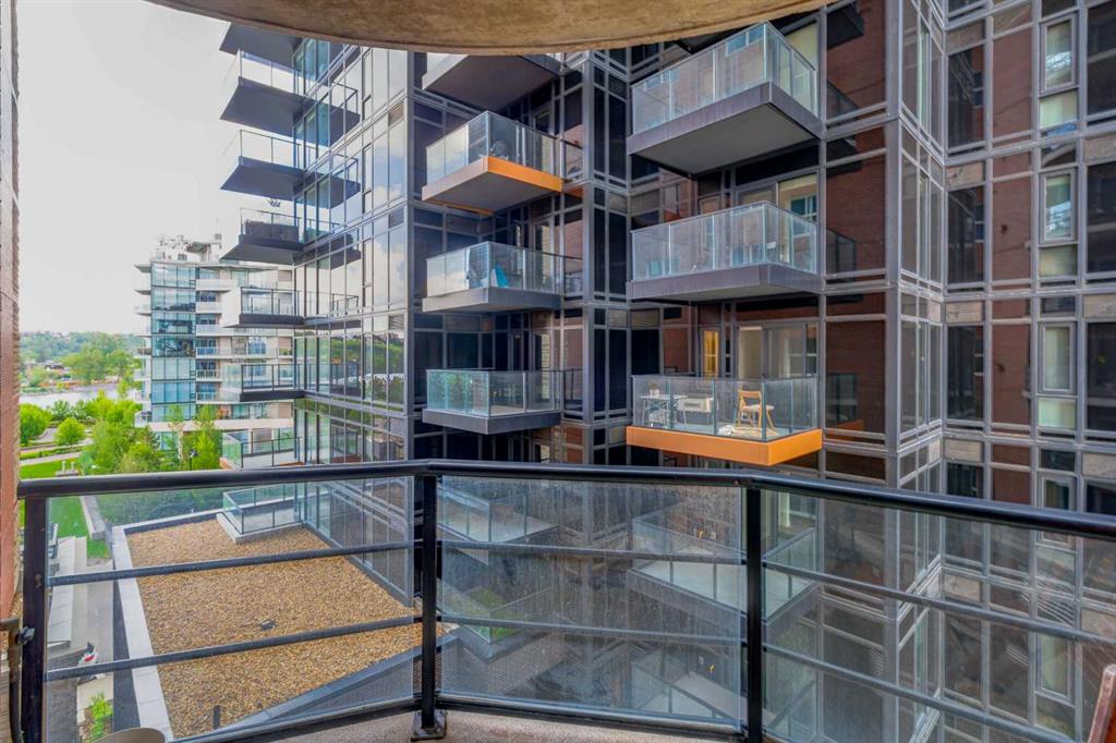 Sophisticated 1 bedroom + a den, 5th floor unit with downtown and river views. Ideally located in the heart of Eau Claire just one block from the Peace Bridge, Prince’s Island and the Bow River. This executive unit is stylishly designed with timeless finishes, central air conditioning and an open floor plan creating an airy ambience. Inspiring culinary exploration, the kitchen is the true hub of the home featuring granite countertops, stainless steel appliances, full-height cabinets and a full-sized centre island with a breakfast bar for casual eats. Gather over large meals or host guests in the adjacent dining room with unobstructed sightlines ensuring easy connectivity. Sit back and relax in front of the warm gas fireplace in the inviting living room or enjoy peaceful coffees on the balcony with east exposure for early morning sun. Downtown and river views provide the breathtaking backdrop to your summer barbeques and outdoor unwinding time. French doors lead to the den, perfect for guests or a home office. Retreat at the end of the day to the calming primary complete with access to the stylish 4-piece bathroom. Adding to your comfort and convenience are in-suite laundry, titled parking, a separate storage locker, a car wash and a full-time concierge. Truly an exceptional condo in an amenity-rich building that is an outdoor lover’s dream - walk or bike downtown, stroll along the river or visit the many shops, cafes and restaurants that this vibrant community has to offer. Close to the future green line and the new redevelopment site planned for the old market area. This outstanding location has it all! Condo fee includes ALL UTILITIES (except internet/TV).
