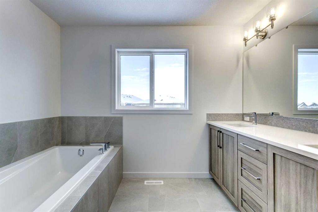 Introducing the Stanley—a stunning BRAND-NEW home built by Excel Homes, an award-winning builder with over 35 years of experience, more than 15,000 homes constructed, and 75 industry and design awards. Excel continues to deliver exceptional quality, innovation, and long-lasting peace of mind. Perfectly positioned on a quiet circle and directly facing a tranquil green space/park, this beautifully upgraded home features a FULLY DEVELOPED BASEMENT WITH A LEGAL SUITE. Offering 2068 sq ft of thoughtfully designed living space, the Stanley delivers an open, family-friendly layout with impressive finishes throughout. The main level features 9’ ceilings, luxury vinyl plank flooring, and a welcoming flow from the spacious foyer into the main living area. The large L-shaped kitchen includes an island overlooking the dining nook, crisp white cabinetry, pot/pan drawers, striking stone countertops, and stainless steel appliances including a gas range, chimney hoodfan, and built-in microwave + oven. The family-sized dining nook sits beside the bright great room—an ideal setup for entertaining and family gatherings—with patio doors leading to your backyard. Upstairs offers three generous bedrooms centered around a dramatic bonus room with vaulted ceilings, perfectly positioned to provide privacy for the spacious primary suite. The elegant ensuite features dual sinks, abundant storage, a soaker tub, and a separate shower. A full 4-piece family bath and a conveniently located laundry room complete this level, with all bathrooms finished in stone counters for a cohesive, upscale feel. The fully developed basement suite features its own private entrance, a good-sized bedroom, a bright open family room, a full kitchen, and a 4-piece bath. The home includes separate utilities for the upper floor and the suite—ideal for multigenerational living or future rental income. This BUILT GREEN® home is equipped with modern essentials including a Smart Home package, radon rough-in, Energy Star appliances, dual-pane Low-E windows, a high-efficiency furnace, and solar panel rough-in. A quick possession is available on this beautifully upgraded, ideally located home—an exceptional opportunity to own a brand-new Excel home in a premier setting.