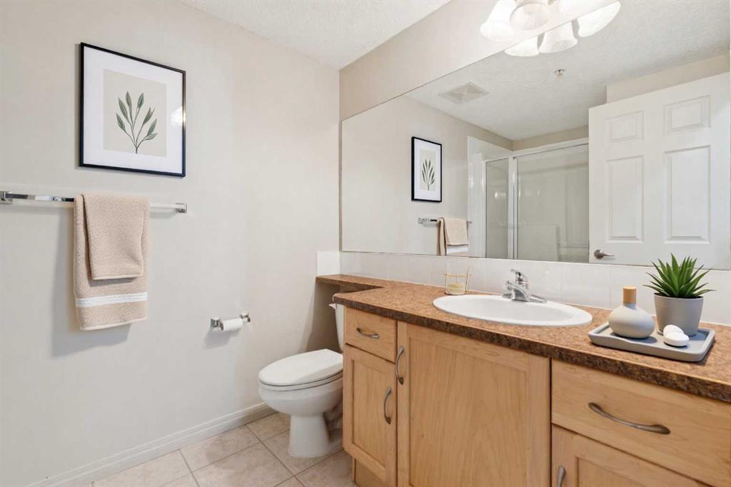 Welcome to the Aviemore of McKenzie Towne, a highly sought-after 55+ condo residence known for its welcoming atmosphere, exceptional lifestyle amenities, and unbeatable location in the heart of this lively, character-rich community. This ground-floor end unit offers a rare combination of privacy and convenience with only one shared wall, air conditioning, efficient heating, a cozy fireplace, and a personal patio that allows for easy outdoor access and relaxed everyday living. From the moment you enter, you’ll appreciate the wide-open layout enhanced by high ceilings and elegant arched doorways that create a bright, spacious feel throughout the home. The kitchen is thoughtfully positioned at the front of the unit and features a practical breakfast peninsula, full-size appliances, a garburator, and ample cabinetry—everything you need within easy reach for both daily meals and entertaining. It flows naturally into the generous living room, where the fireplace adds warmth and comfort and the patio access extends the living space outdoors. Down the hall, the layout continues with a full bathroom and two comfortable bedrooms, including a standout primary suite complete with a walk-in closet and private ensuite for added convenience. An in-suite laundry room with washer and dryer, along with additional storage space, adds everyday functionality and keeps everything neatly organized. A titled parking stall adds yet more value, providing a secure underground space with additional storage at the end of the stall. Life at the Aviemore is elevated by an impressive range of amenities designed to keep residents active, social, and engaged, including party rooms, a theatre, a fully equipped fitness centre with sauna, woodshop and hobby rooms, library, pool and billiards area, wine-making room, car wash bay, and a beautifully maintained outdoor gazebo. Beyond the building, McKenzie Towne truly shines with its walkable streets, charming High Street shops and cafés, nearby parks and pathways, and a strong sense of community that makes it easy to stay connected and enjoy a relaxed, fulfilling lifestyle right outside your door.