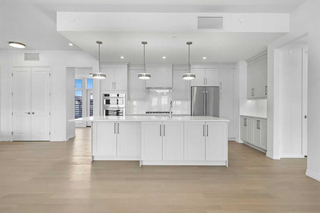 New Price Release — 10 Luxury Reflection Homes Just Completed, Ready for Immediate Occupancy! The Streams of Lake Mahogany present an elevated single-level lifestyle in our stunning Reflection Estate homes situated on the parkside of Mahogany Lake. Selected carefully from the best-selling, renowned Westman Village Community, you will discover THE CASCADE, a home crafted for the most discerning buyer, offering a curated space to enjoy and appreciate the hand-selected luxury of a resort-style lifestyle while providing a maintenance-free opportunity to lock and leave. Step into an expansive 1700+ builders sq ft stunning home overlooking a gorgeous greenspace adjacent to Mahogany Lake featuring a thoughtfully designed open floor plan inviting an abundance of natural daylight with soaring 10-foot ceilings and oversized windows. The centralized living area, ideal for entertaining, offers a Built-in KitchenAid sleek stainless steel package with French Door Refrigerator and internal ice maker and water dispenser, a 36" gas cooktop, a dishwasher with a stainless steel interior, and a 30-inch wall oven with microwave; all nicely complemented by an Elevated Nordic Color Palette. All feature stunning Quartz countertops. You will enjoy two beautiful bedrooms and a generous central living area. The Primary Suite features a spacious 5-piece oasis-like ensuite with dual vanities, a large soaker tub, a stand-alone shower, and a generous walk-in closet. The Primary Suite and main living area step out to a 39 ft x 15 ft terrace with a lovely view of the greenspace. Yours to enjoy and soak in every single day. To complete the package, you have a sizeable office area adjacent to the spacious laundry room, and a double-attached heated garage with a full-width driveway. Custom additions to this home include under-cabinet lighting, an upgraded Moen plumbing fixture package, air conditioning, a convenient laundry room with a folding table, a stunning electric fireplace, and an expansive covered terrace with access from the Living Room, Dining Room, and owner's suite. Jayman's standard inclusions feature their trademark Core Performance, which includes Solar Panels, Built Green Canada Standard with an Energuide rating, UVC Ultraviolet light air purification system, high-efficiency heat pump for air conditioning, forced air fan coil hydronic heating system, active heat recovery ventilator, Navien-brand tankless hot water heater, triple pane windows and smart home technology solutions. Enjoy Calgary’s largest lake, with 21 more acres of beach area than any other community.