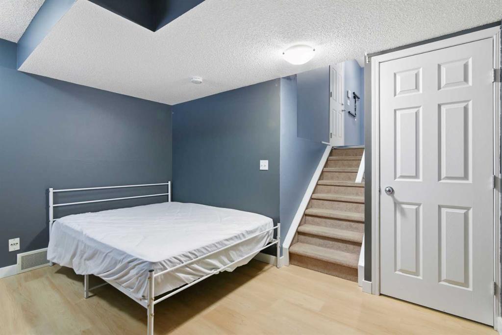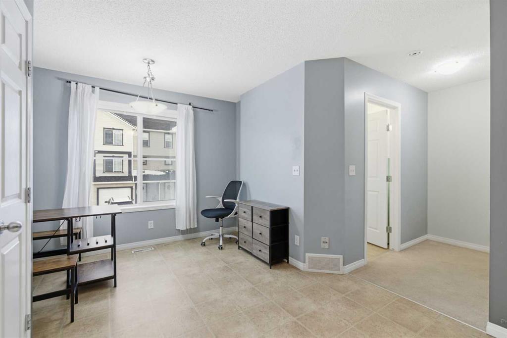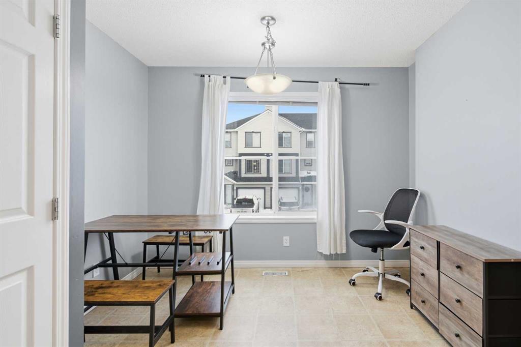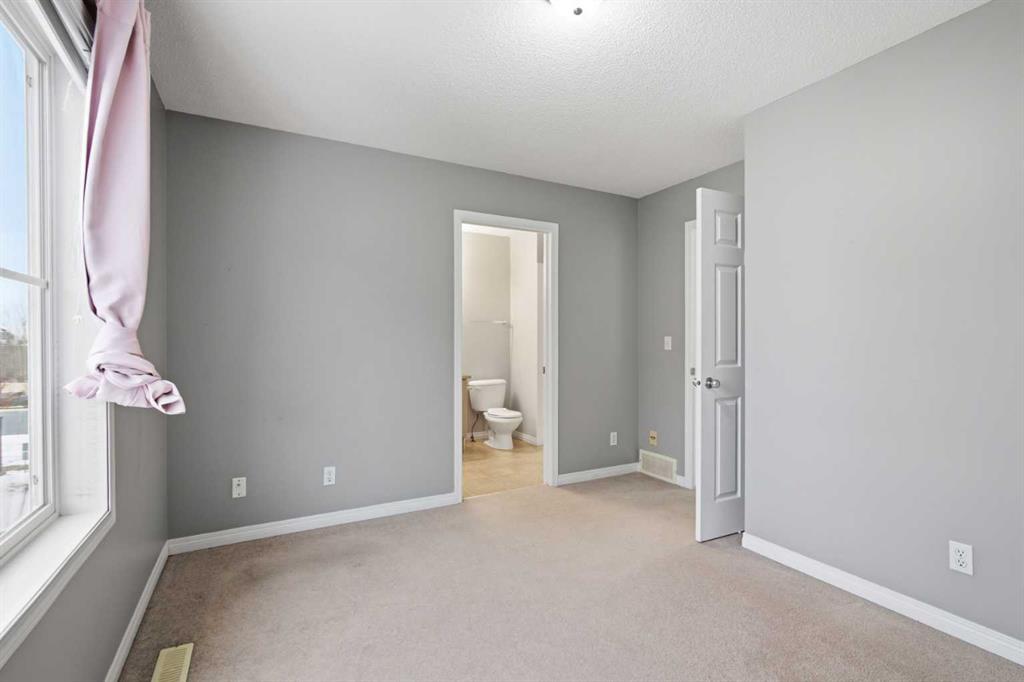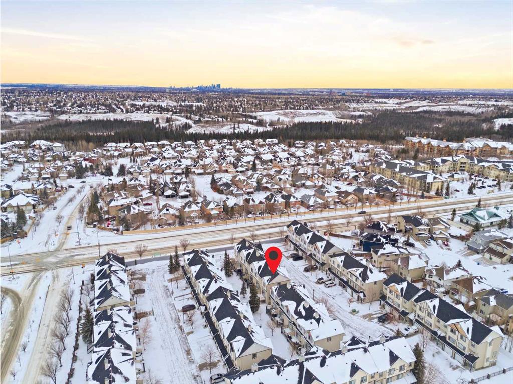Beautiful sunny end-unit townhome located steps from Fish Creek Park. This low-maintenance townhouse backs onto a green space and features a private deck. The oversized living room offers 14-ft ceilings and tall windows for excellent natural light. Spacious kitchen with maple cabinets, upgraded laminate flooring, black appliances, and a bright breakfast nook. The home includes two primary suites, each with large closets and private ensuites. The lower-level flex space is ideal for a family room, office, gym, or playroom. Attached single garage plus driveway parking. Small pets allowed. Easy access in and out of the complex.