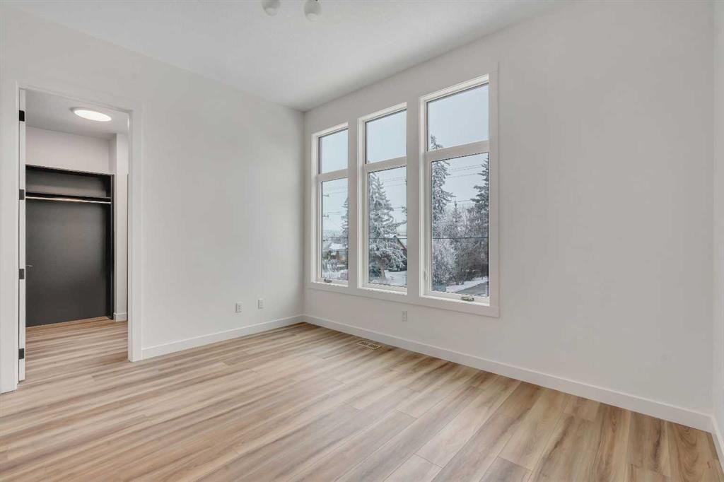 Welcome to The Ebony, a striking brand new duplex in the heart of Bowness, close to Bowness Park, the Bow River, and the river pathway system. Built by Arbutus Rock, a reputable Calgary builder known for thoughtful design, quality construction, and homes that are made to live in. Inside, you will find a bold, modern finish package with rich, dark tones, warm brass accents, and layered textures that feel polished without feeling cold. The main floor offers an open concept layout with a statement kitchen, large windows, and a bright living space that works well for everyday life and entertaining. Upstairs, the layout is practical and family friendly with three bedrooms, upper floor laundry, and a full main bathroom. The primary suite stands out with a walk in closet and a private ensuite, finished to match the home’s clean, modern style. The fully developed legal basement suite adds long term flexibility and value with a separate entrance, full kitchen, bedroom, bathroom, and dedicated laundry. Set in one of Calgary’s most established inner city communities, this home offers park and river access nearby, plus an easy commute to downtown.