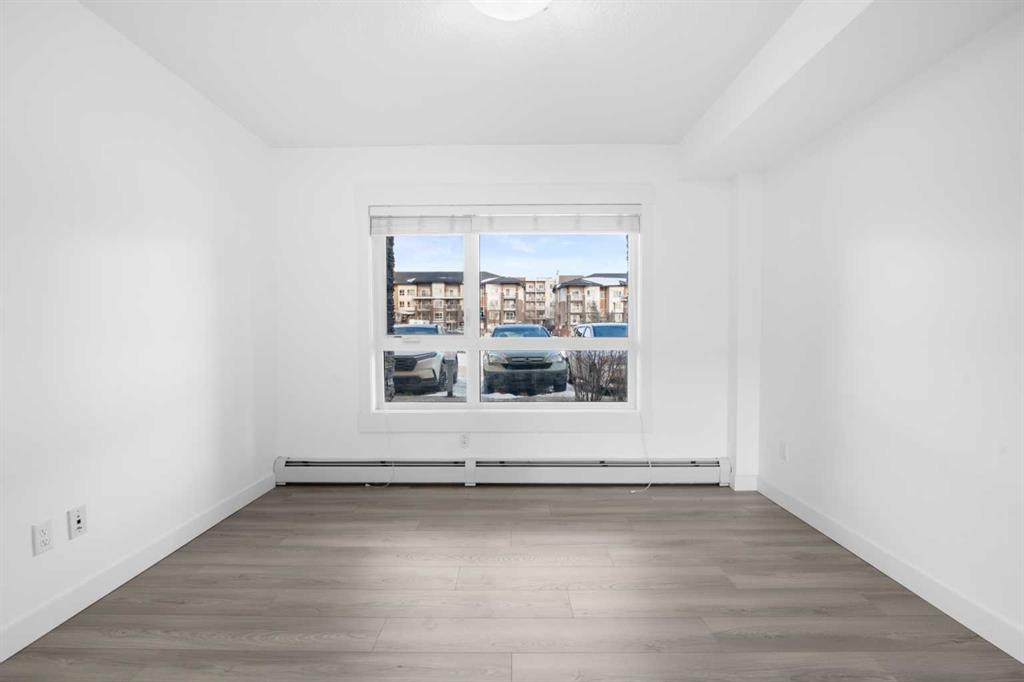 Welcome to this bright ground-floor apartment in the heart of Skyview Ranch, ideally located across from Public and Catholic schools. This well-designed 2-bedroom, 1-bathroom unit features an open-concept floor plan with approximately 630 sq. ft. of total area space, perfect for first-time buyers, downsizers, or investors. The kitchen offers granite countertops, stainless steel appliances, and a functional island that comfortably seats three bar stools, flowing seamlessly into the dining and living areas. The spacious living room opens through glass-panel patio door to an exposed concrete patio with a gas line, ideal for BBQ season. Both bedrooms are well-sized, with the primary bedroom offering generous space and dual closets. Enjoy the convenience of in-suite laundry with extra storage, along with titled surface parking. Situated in a well-managed complex with easy access to public transit, shopping, playgrounds, and close proximity to CrossIron Mills and major roadways. Book your private showing today—this one won’t last!