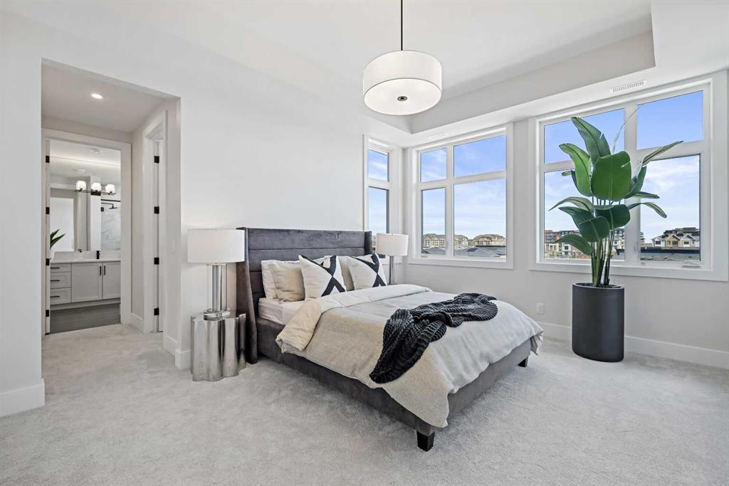 New Price Release — 10 Luxury Reflection Homes Just Completed, Ready for Immediate Occupancy! The Streams of Lake Mahogany present an elevated single-level penthouse lifestyle in our stunning Reflection Estate homes situated lakeside on Mahogany Lake. Selected from the renowned Westman Village Community, you will discover THE SPRINGS, a home created for the most discerning buyer, offering a curated space to enjoy and appreciate the hand-selected luxury of a resort-style feel while providing you with a maintenance-free opportunity to lock and leave. Step into an expansive 2000+ builders sq ft stunning home overlooking the gorgeous Mahogany Lake featuring a thoughtfully designed open floor plan inviting an abundance of natural daylight with soaring 12-foot ceilings and floor to ceiling windows. The centralized living area, ideal for entertaining, offers a Built-in ULTRA JennAir appliance package with a 42” - 24.2 Cu Ft., Built-In, paneled, french door refrigerator with Obsidian black interior and built-in icemaker plus water with surround refrigerator Armoire Kit. Additionally, 24” cabinet panel ready dishwasher with stainless steel interior, 36” Professional-Style gas range top, Faber built-in cabinet hood fan, 30” combination wall oven plus microwave and Silhouette Emmental 24" Bev. Center; all nicely complemented by an Elevated Obsidian Colour Palette. All feature stunning Quartz countertops. You will enjoy two beautiful bedrooms and a generous central living area. The Primary Suite features a spacious 5-piece oasis-like ensuite with dual vanities, a large soaker tub, a stand-alone shower, and a generous walk-in closet. The Primary Suite and main living area open to a 35 ft x 17 ft terrace with a lovely view of the stunning Lake. Yours to enjoy and soak in every single day. To complete the package, you have a sizeable office area adjacent to the spacious laundry room and powder room, which open onto another expansive 25ft terrace, and a double-attached heated garage with a full-width, full-length driveway. Custom additions to the home include under-cabinet lighting in the kitchen, A/C, a laundry room with a convenient folding counter, a coffee bar, an office space, and more. Jayman's standard inclusions feature their trademark Core Performance, which includes 4 Solar Panels used to power common spaces, Built Green Canada Standard with an Energuide rating, UVC Ultraviolet light air purification system, high-efficiency heat pump for air conditioning, forced air fan coil hydronic heating system, active heat recovery ventilator, Navien-brand tankless hot water heater, triple pane windows and smart home technology solutions. Enjoy Calgary’s largest lake, with 21 more acres of beach area than any other community.