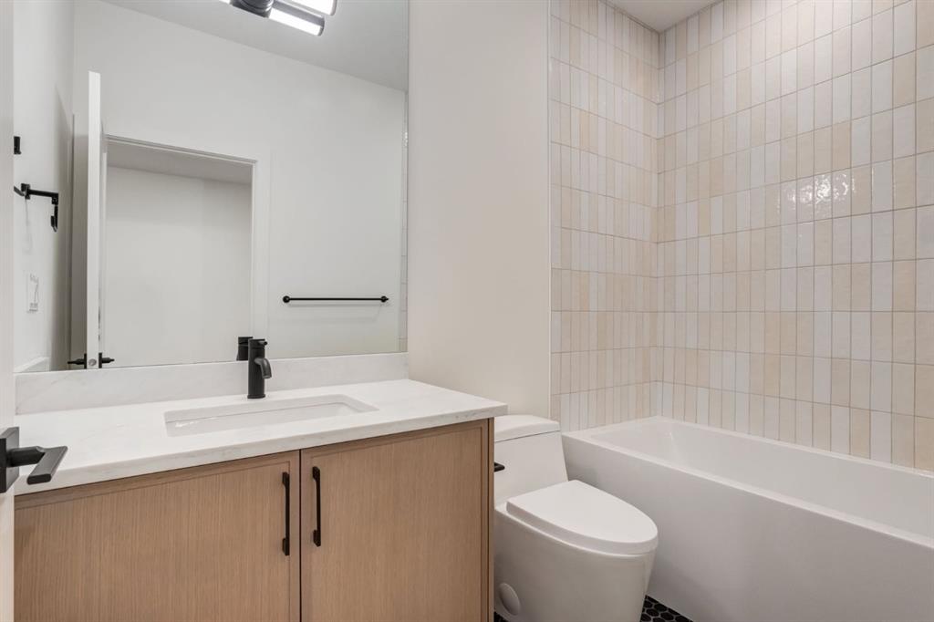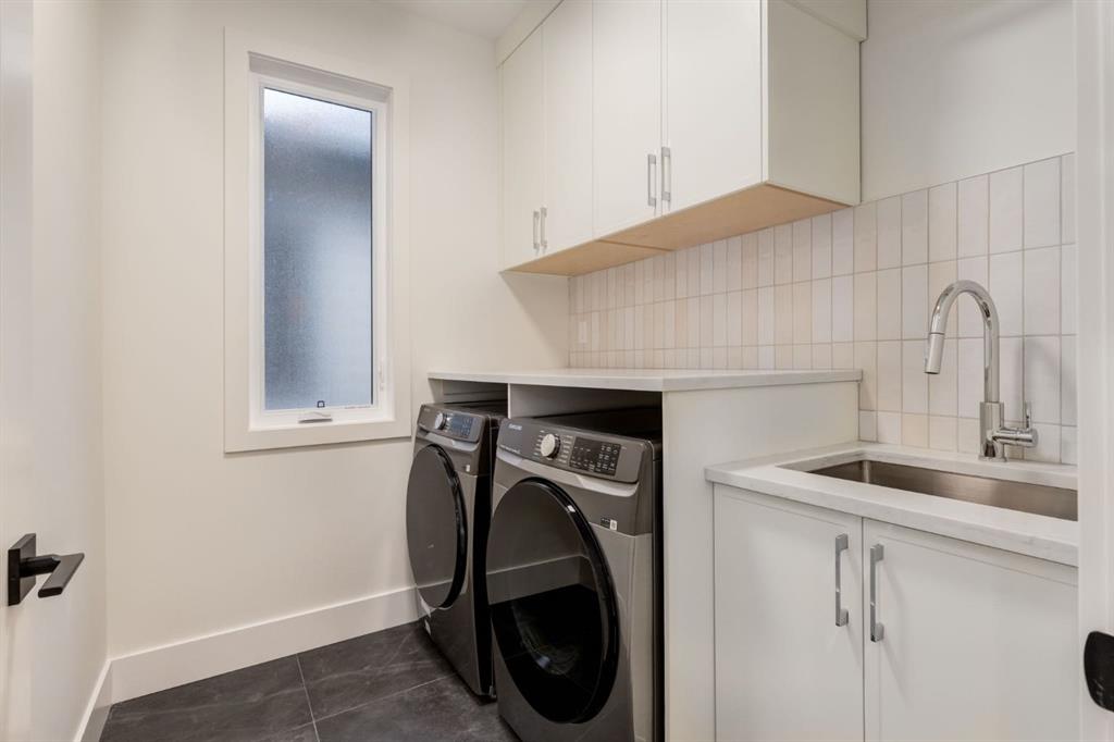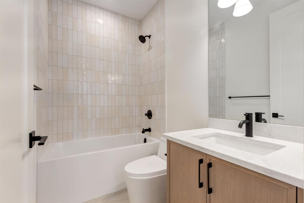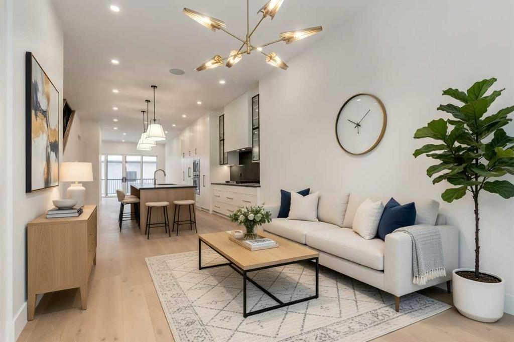 Welcome to this brand-new, two-story home situated on a desirable south-facing backyard lot in the heart of Mount Pleasant, just steps from Confederation Park. Enjoy one of the community’s most sought-after locations with immediate access to walking paths, green space, playgrounds, and year-round recreational amenities. This thoughtfully designed home features a custom kitchen complete with a beadboard-paneled hood canopy, oversized quartz island, and designer light fixtures, creating a perfect space for everyday living and entertaining. The inviting living area is highlighted by a limestone fireplace mantle, adding warmth and character to the home. Upstairs, the primary ensuite offers a beautifully finished tub area and oversized shower, while laundry equipment is conveniently included. The fully finished basement provides additional living space and offers flexibility, with the option to convert into a suite if desired. A secondary suite would be subject to approval and permitting by the city/municipality. The professionally landscaped exterior complements the sunny south-facing backyard, ideal for outdoor enjoyment. Located close to schools, shopping, transit, and major roadways, this home combines modern finishes with an exceptional location in one of Mount Pleasant’s most vibrant and family-friendly neighborhoods.