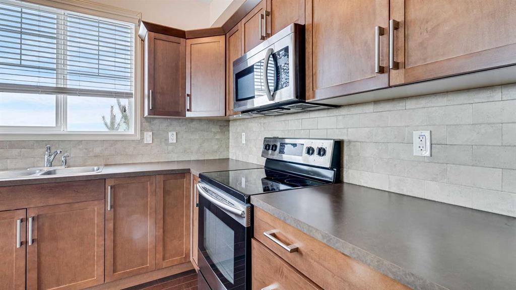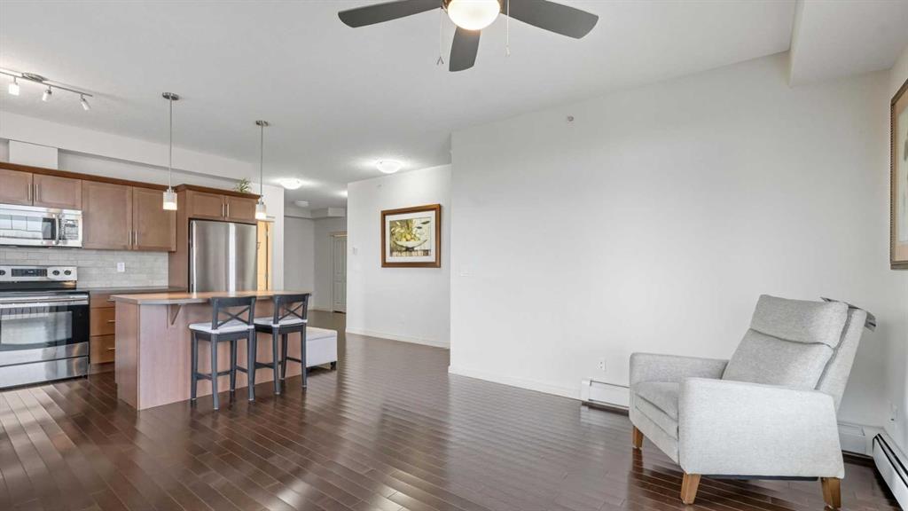 Welcome to one of the premier residences in Cranston a rare top floor corner unit that truly stands out from the rest. This expansive 2-bedroom, 2-bath + dedicated office home, offering an exceptional layout, elevated privacy, and natural light pouring in from multiple directions. Positioned on the top floor and corner of the building, this home benefits from additional side windows, flooding the space with sunlight and creating a bright, airy feel throughout the day. The elevated location also delivers mountain views from the back, while facing a green space—a perfect balance of scenery and serenity. Adding to the appeal is a titled, heated underground parking stall, providing year-round convenience, security, and comfort—no scraping windows or braving the cold in winter. The thoughtfully designed floor plan offers generous living and nook, designed for relaxed living and easy functionality. The dedicated office space is a standout feature perfect for working from home, a creative studio, or a quiet retreat. Two spacious bedrooms and two full bathrooms provide comfort, privacy, and flexibility for a variety of lifestyles.
