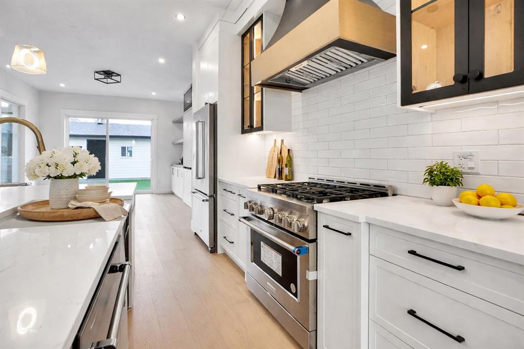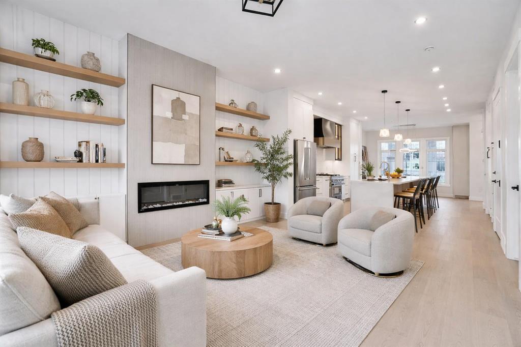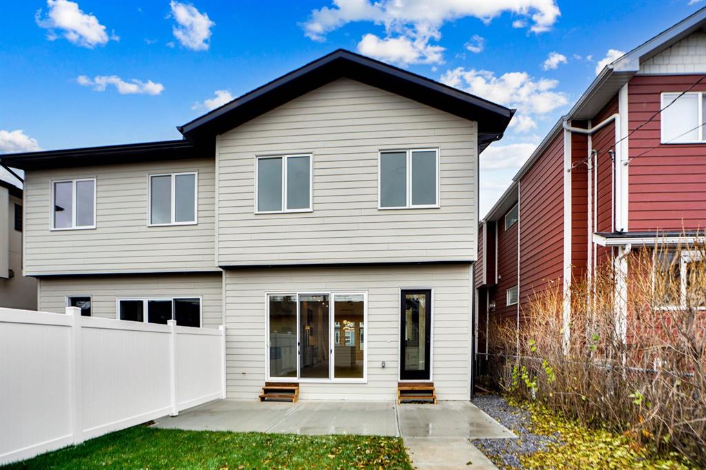 Brand-New Luxury Infill in Bowness | Legal 2-Bedroom Suite | South Backyard Luxury + Income Potential + Lifestyle – All in One Home. Move right in to this stunning, never-lived-in luxury infill featuring a bright open floor plan, designer finishes, and a legal 2-bedroom basement suite for rental income or multigenerational living. Enjoy a chef-inspired kitchen with quartz countertops, warm wood accents, premium stainless steel appliances, and a show-stopping waterfall island. The living room boasts a modern fireplace with custom built-ins and opens to a sunny south-facing backyard – perfect for entertaining. Upstairs, a spa-like primary suite with walk-in closet, dual sinks, freestanding tub, and glass custom shower, plus two additional bedrooms and full bath. The bright basement suite offers its own kitchen, laundry, private entrance, and full bath – ideal for guests or tenants. Prime location near Bow River pathways, Bowmont Park, Market Mall, Winsport, schools, and quick highway access to the mountains.