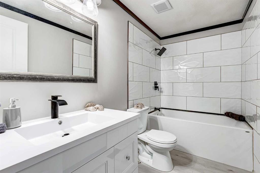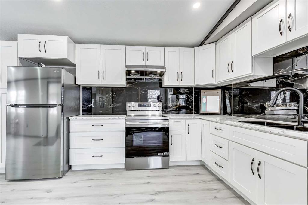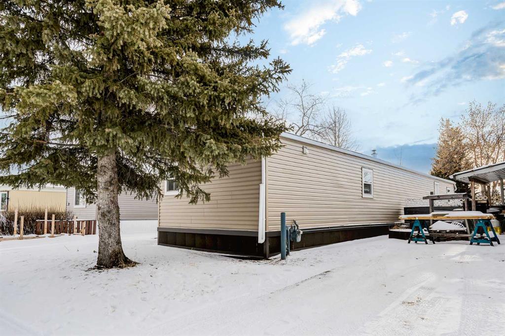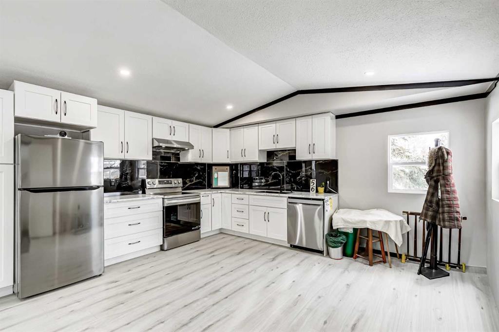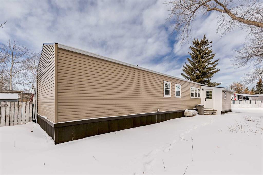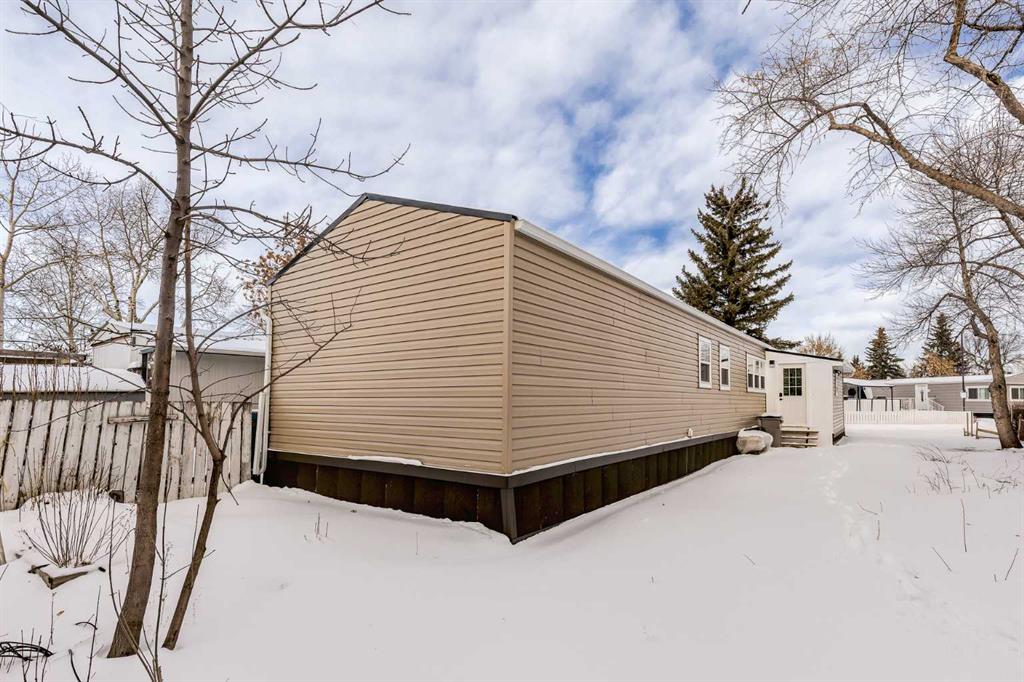 OPEN HOUSE Saturday January 24th 11am-1pm. This meticulously updated home combines long-term structural integrity with a stunning, modern aesthetic. Following a series of upgrades, including a new metal roof & furnace in 2009, full replacement of plumbing in 2011, and updated wiring in 2013, this property underwent a complete professional transformation in 2025. The interior has been reimagined with a contemporary open-concept layout, featuring all-new drywall, Air conditioning, freshly painted, and smooth ceilings accented by LED pot lights and designer fixtures. The gourmet kitchen is a true showpiece, boasting brand-new cabinetry, elegant tile backsplashes, and a full suite of stainless-steel appliances, including an electric range, hood fan, dishwasher and fridge. Every inch of the living space has been refined with new flooring, interior doors, and trim. The bathroom is equally impressive with full renovation featuring a brand-new tub and vanity with modern faucets. Just outside you’ll find a space-saving tower washer/dryer. The exterior is built for durability and curb appeal, all completed in 2025 featuring new windows & exterior doors for enhanced energy efficiency and security, premium vinyl siding, Trimlock skirting with integrated rodent guard, structure was recently leveled and furnace tune-up completed. A large yard offers ample space for recreation, complemented by a convenient two-car parking pad. Move in with total peace of mind knowing the major systems have been modernized and the interior is effectively brand new. Calgary Village is a well-run park with clubhouse amenities include a gym and recreation room. This unbeatable location has easy access to the vibrant events at Elliston Park and seamless connections to Stoney Trail, putting the entire city within effortless reach. Don’t miss this rare opportunity to own this gem in a prime Calgary location.