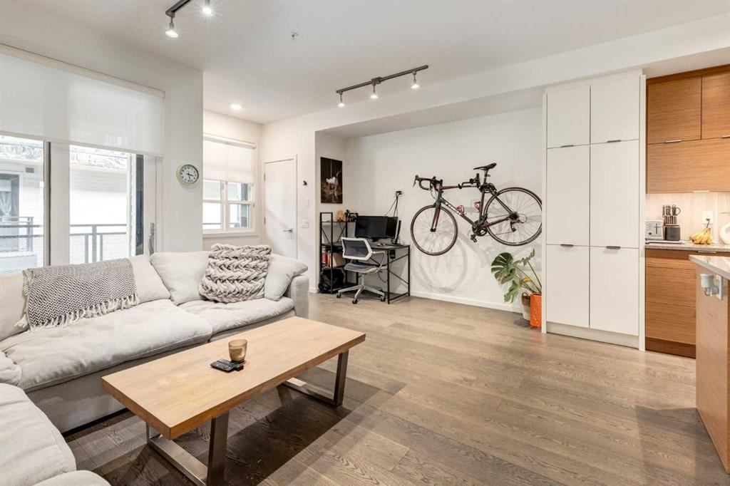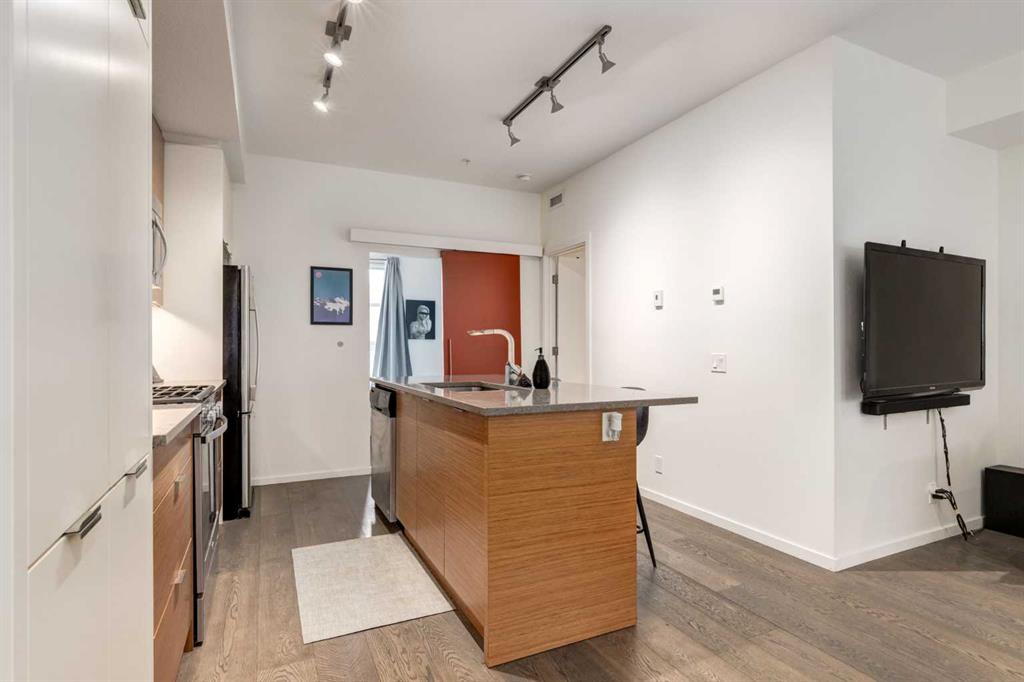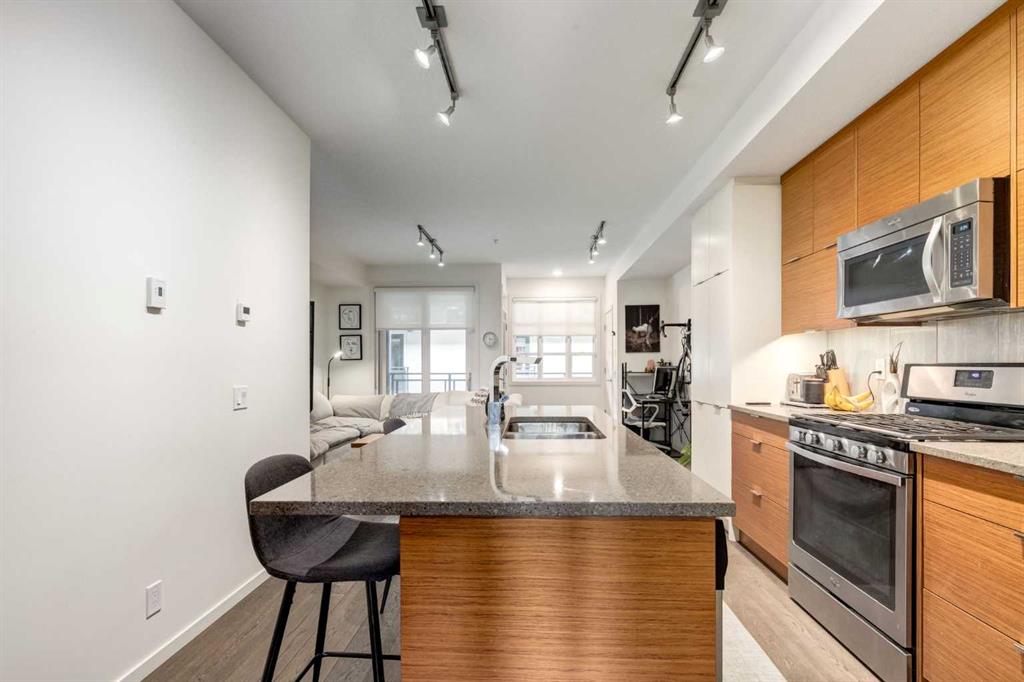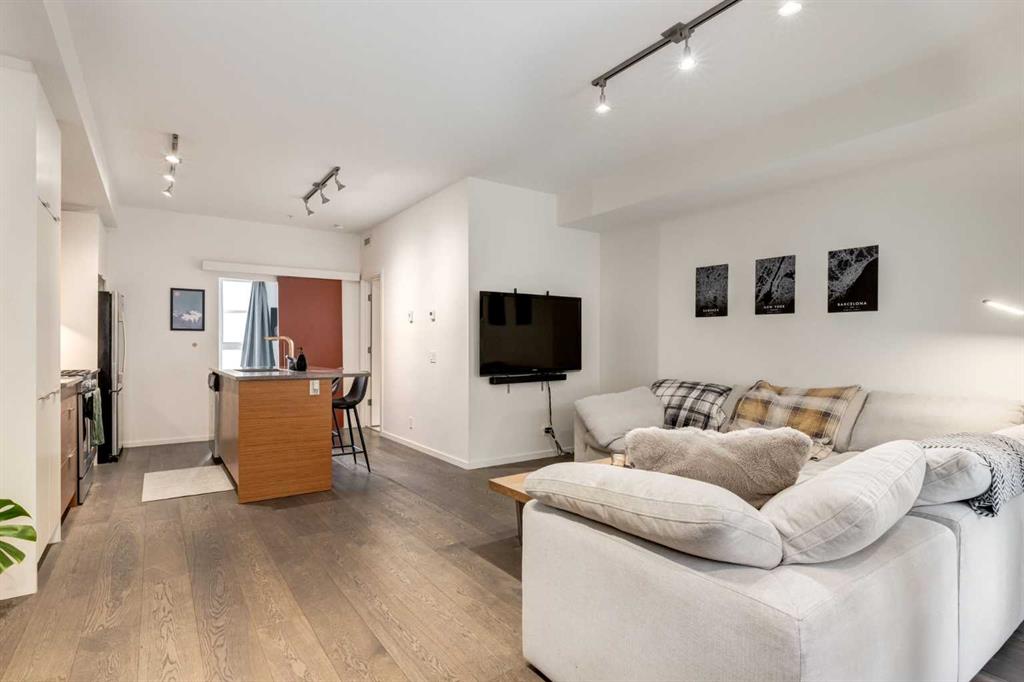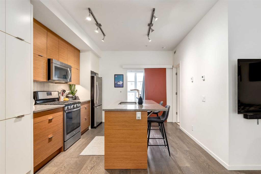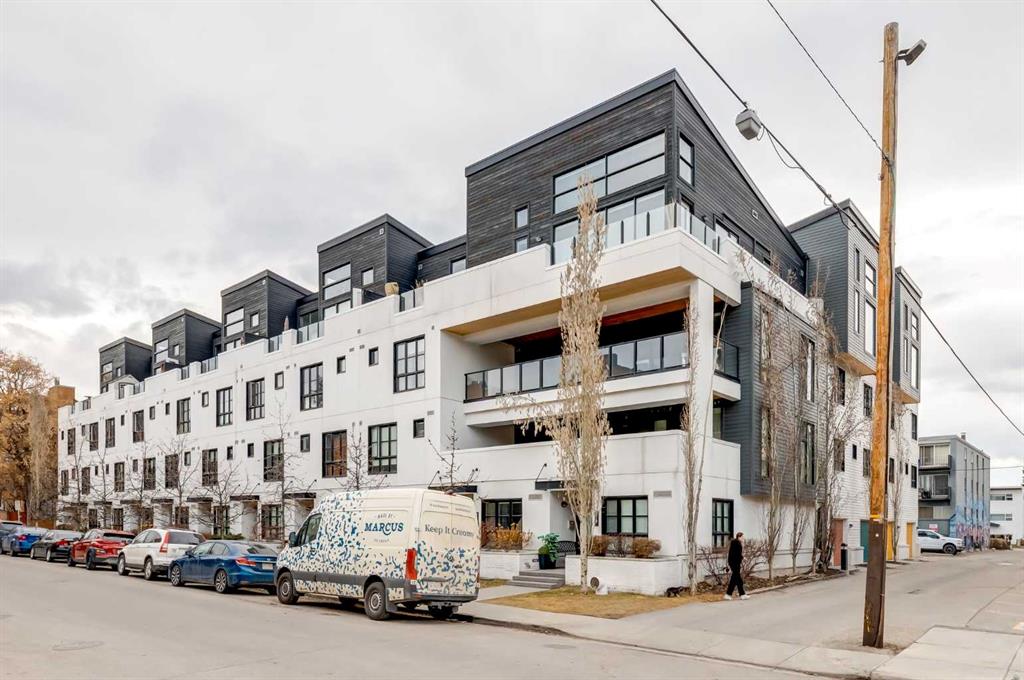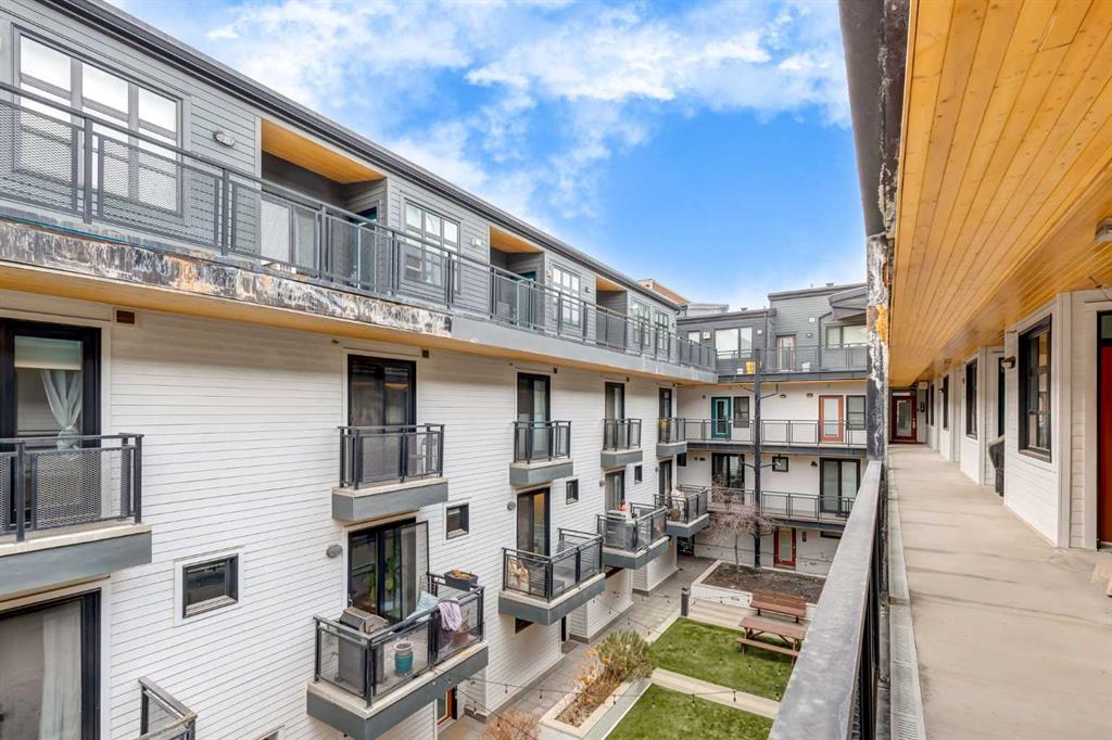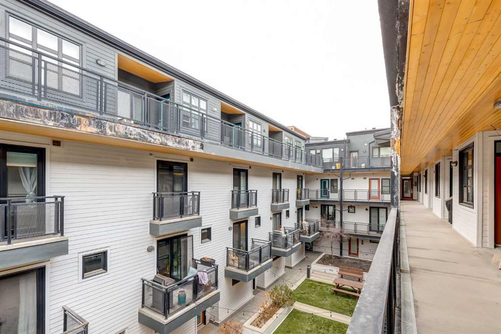 ** PRICE IMPROVEMENT **Discover urban living at its finest in this stylish one-bedroom, one-bathroom condo situated in the heart of Lower Mount Royal, this residence offers unparalleled access to the vibrant 17th Avenue, renowned for its eclectic mix of shops, restaurants, and entertainment venues.? Designed by the acclaimed Sturgess Architecture and constructed by Avi Urban in 2014, this condo boasts contemporary aesthetics and quality craftsmanship. The open-concept layout is accentuated by 9-foot ceilings and oak plank hardwood flooring, creating a bright and inviting atmosphere. The living and dining areas seamlessly flow into the modern kitchen, which features stainless steel appliances, sleek cabinetry, and ample counter space—perfect for both everyday living and entertaining.? One of the standout features of this unit is its direct access to an expansive communal terrace overlooking a beautifully landscaped courtyard. This unique outdoor space offers a serene retreat in the midst of the city, ideal for relaxation or social gatherings. Residents will appreciate the secure building access and the convenience of nearby public transportation options, making commuting a breeze. Experience the perfect blend of modern design and urban convenience in this exceptional Lower Mount Royal condo.