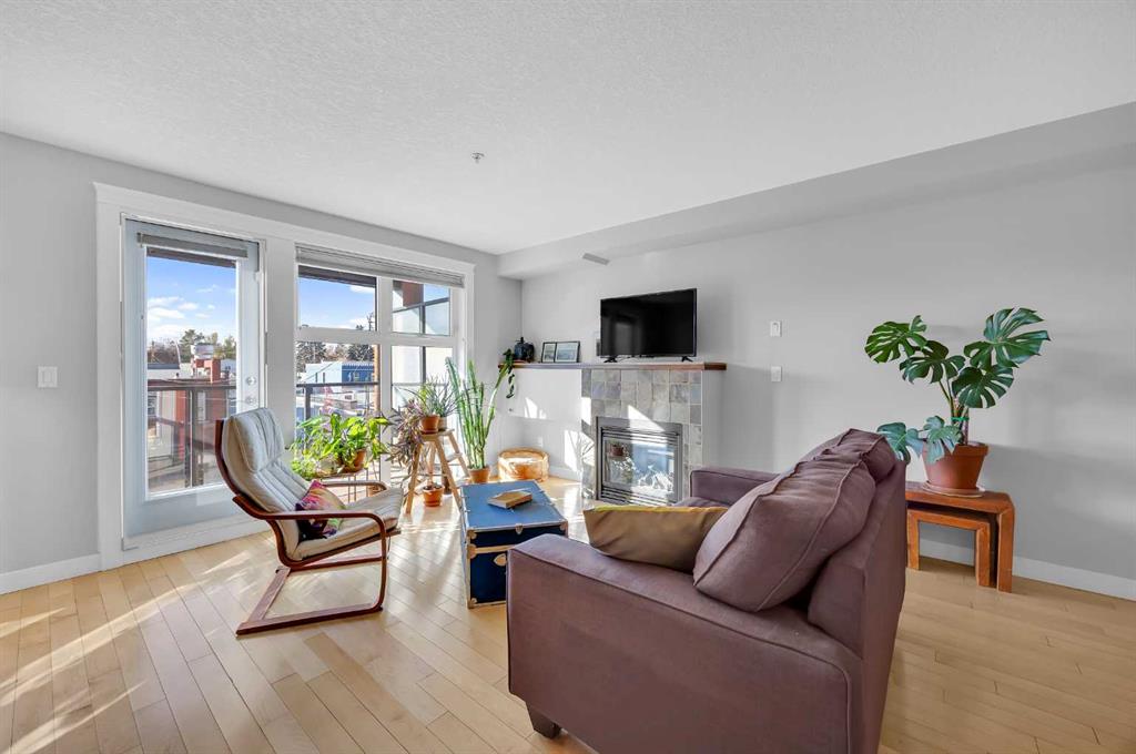 This bright and airy 2-bedroom, 1-bathroom condo offers a spacious layout that truly stands out. The galley kitchen features stainless steel appliances and granite countertops, opening to a dining area large enough to accommodate a full-size table—rarely found in condo living and perfect for hosting. The inviting living room is highlighted by a cozy gas fireplace, creating a warm and welcoming space to unwind. Hardwood flooring runs throughout, complemented by the convenience of in-suite laundry. West-facing exposure fills the unit with natural light. The home also includes an underground parking stall, secure storage locker, and bicycle storage. Ideally located, you’ll enjoy easy access to unique shops, restaurants, and transit. All just a short walk away.