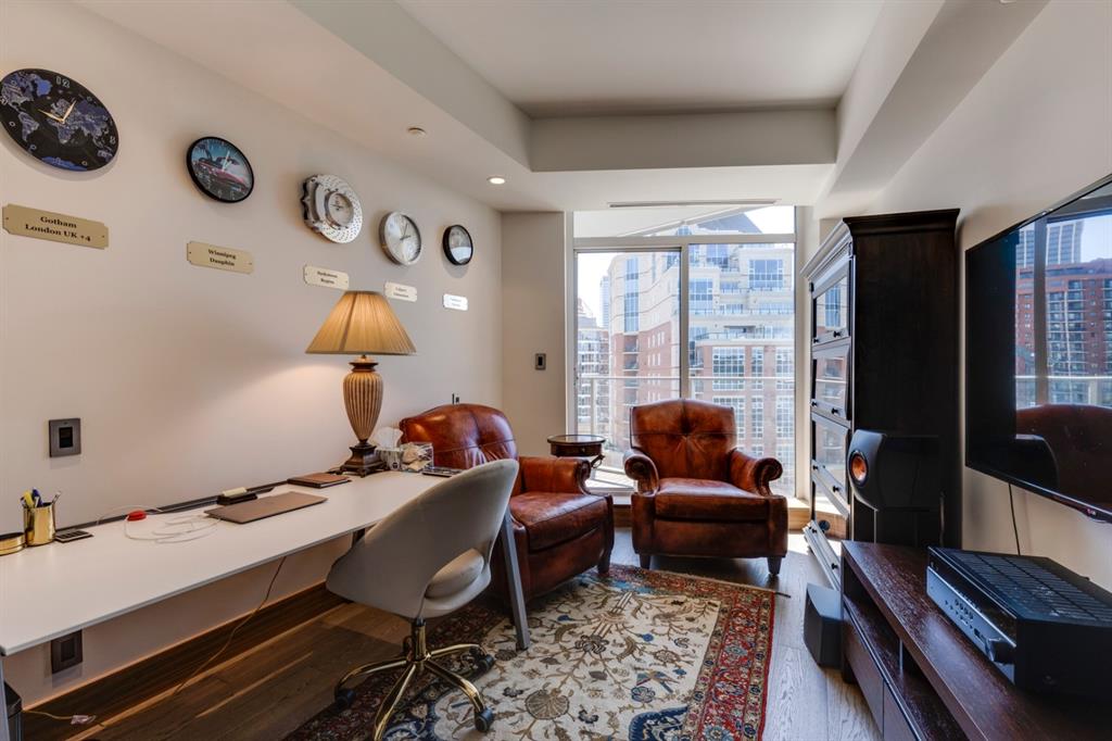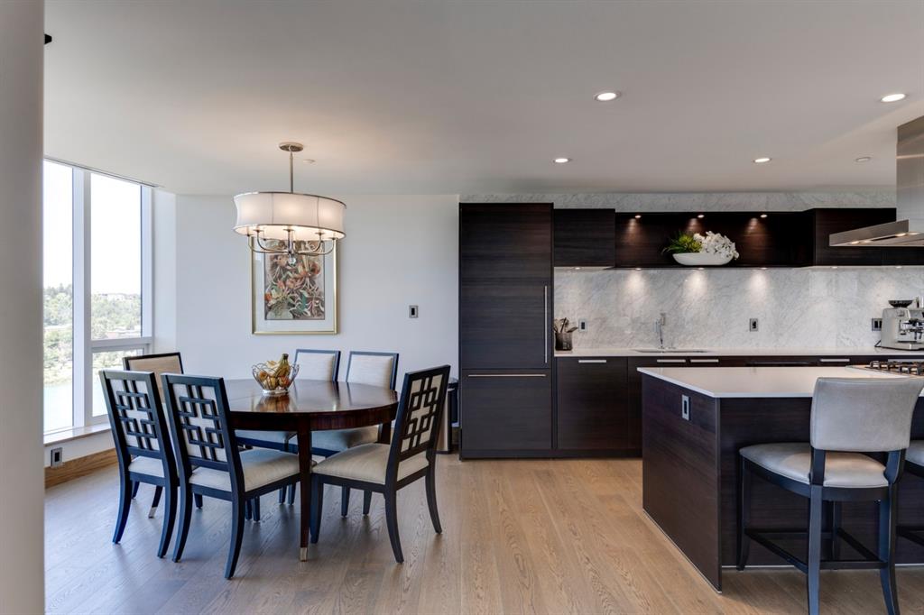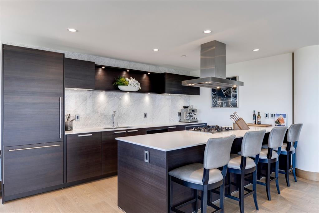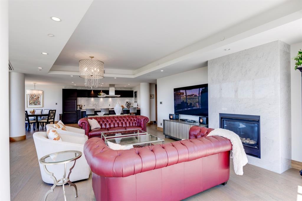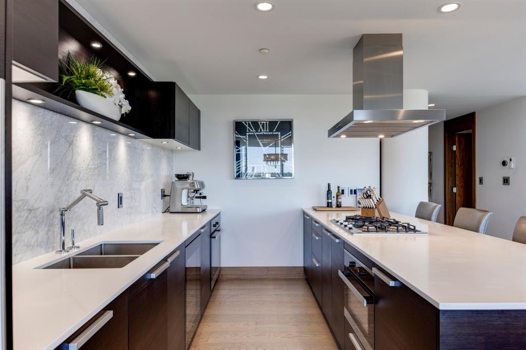 Welcome to The Concord; a magnificent riverside residence reflecting the essence of luxury living. A landmark anchored in the pulse of Calgary’s most affluent community – offering a harmoniously blended marriage of live, work, & play. Dine at one of many exquisite culinary offerings located within the community which will impress even the most well-traveled palette. Host parties in the amenities rich social lounge overlooking the summer water garden/winter skating rink fully equipped with a wet bar, summer kitchen, BBQ, and two outdoor firepits. Unwind after a long day in your very own yoga room and private gym. Come home and appreciate the opulent convenience of 24hr concierge service and the expediency of a private elevator that leads to nearly 2,000 sq.ft. of thoughtfully designed living space – showcasing some of the most impressive views that Calgary has to offer. Displaying the highest level of craftsmanship and luxurious interior tailoring within each room including: German engineered Poggenpohl kitchen, Miele appliances, engineered hardwood flooring, Bianco Carrara marble features, rich walnut detailing, custom built-ins, tray ceilings, expansive windows, heated tile flooring, and so much more. Complete with a private double garage (with room for a double car lift) and storage. Call today to set up your private tour.