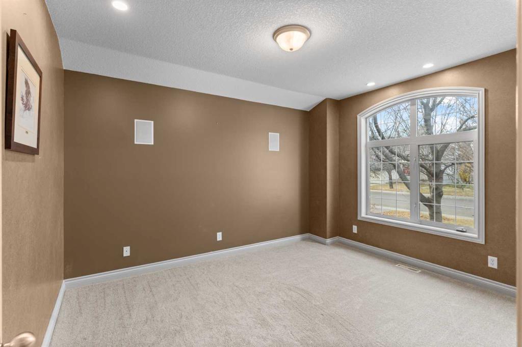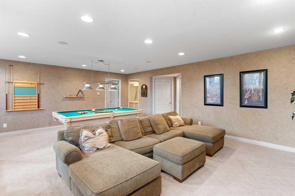 Welcome to this rare custom bungalow tucked away in the beautiful and established community of Panorama Estates. With almost 2,950 sq.ft. of living space, this home offers 3 bedrooms, 2 dens, 3 bathrooms, and a double attached garage, all set against the peaceful backdrop of the Country Hills Golf Course. As you step inside, you’re greeted by soaring cathedral ceilings and an open-concept layout that instantly feels inviting. The living room features a two-way gas fireplace with stone surround and a classic mantle, adding warmth to the space. The kitchen is both practical and welcoming, offering stainless steel appliances, granite countertops, maple cabinets, and a large island with breakfast bar. It flows into the bright dining area that leads to your balcony overlooking the golf course, a perfect spot to enjoy your morning coffee. On the north side of the home, the primary bedroom feels like a private getaway with its fireplace, walk-in closet, and luxurious 5-piece ensuite. Wake up to the quiet view of green fairways outside your window. The main floor also includes a bright den, a full 4-piece bath, and a convenient laundry area. Downstairs, the fully finished basement is where the fun begins. A spacious recreation area with a pool table, movie lounge, and plenty of space for gatherings makes it perfect for entertaining. Two more bedrooms, a second den, and another 4-piece bathroom complete the lower level. Outside, you’ll find yourself surrounded by mature trees, walking paths, and peaceful views. The location is unbeatable with schools, shopping, the Vivo recreation centre, Panorama Hills Community Centre, and major routes like Stoney Trail, Deerfoot Trail, and Country Hills Blvd all nearby. Whether you’re seeking a serene retreat for retirement or a warm family home with room to grow, this property has everything you need and more.