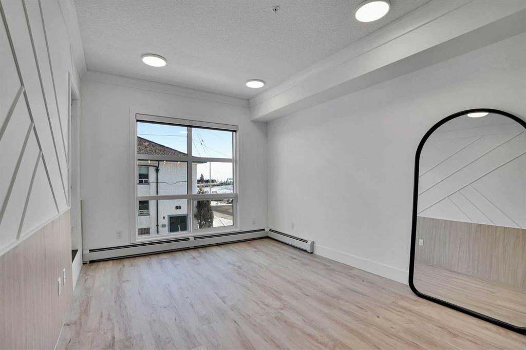 Welcome to this almost new 1 bedroom plus den condo in the prestigious Currie Barracks community—where timeless architecture meets modern inner-city living. Thoughtfully designed and finished with upscale details, this home is ideal for professionals, first-time buyers, downsizers, or investors seeking a low-maintenance lifestyle in one of Calgary’s most desirable SW locations. Step inside to discover high ceilings, luxury vinyl plank flooring, elegant crown mouldings, and oversized windows that flood the space with natural light. The open-concept layout seamlessly connects the kitchen, dining, and living areas—perfect for entertaining or everyday comfort. The designer kitchen features quartz countertops and backsplash, ceiling-height cabinetry, premium built-in stainless steel appliances, and sleek modern hardware—offering both beauty and functionality. The spacious living area flows effortlessly from the kitchen, creating a bright and inviting atmosphere. The primary bedroom is well-proportioned with large windows and ample closet space, while the versatile den is perfect for a home office, study, or guest area. The contemporary bathroom is finished with floor-to-ceiling tile, quartz vanity, and stylish fixtures, delivering a spa-inspired feel. Additional conveniences include in-suite laundry, air-conditioning rough-in, and extra storage. This unit comes with titled heated underground parking, access to EV charging stations, and a Pet-Friendly, Short-Term Rental–Friendly building, making it an excellent opportunity for both homeowners and investors. Located just minutes from Mount Royal University, Marda Loop, public transit, schools, downtown Calgary, parks, shopping, and major roadways. Currie Barracks offers an unmatched blend of walkability, green space, and urban convenience—all within a historic, master-planned community. Immediate possession available for investors. Don’t miss your chance to own a almost new home in one of Calgary’s most exciting inner-city developments—check out the 3D Virtual Tour link or book your private showing today! (The unit is being rented from March 1st 2026 to Feb 28th 2027)