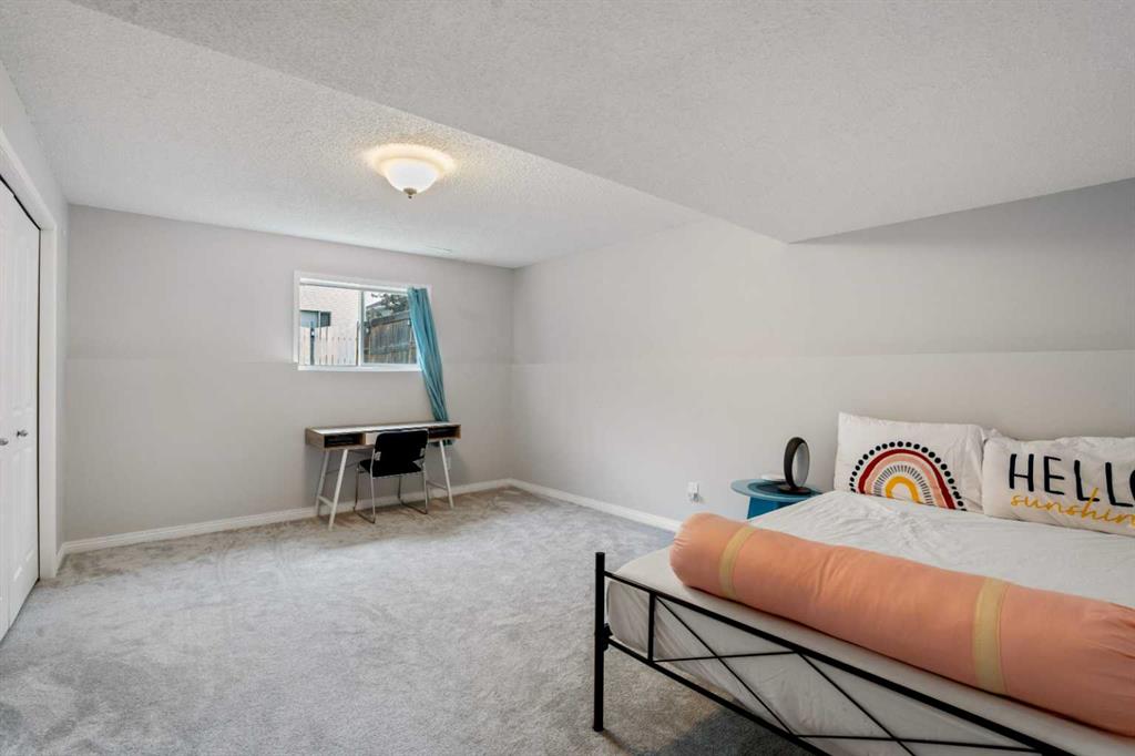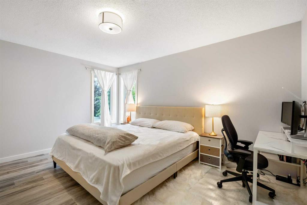 Welcome to this beautifully renovated bi-level home offering over 2,500 sq. ft. of developed living space, featuring 6 bedrooms and 3 full bathrooms—ideal for large or multi-generational families. The bright, open main floor showcases luxury vinyl plank flooring, new carpet, quartz countertops, and oversized windows that flood the home with natural light. The primary bedroom includes a walk-in closet and private ensuite. The fully finished lower level offers a spacious family room with gas fireplace, three additional bedrooms, and a full bathroom—perfect for guests, teens, or home office use. Enjoy the large backyard with play set, garden beds, and ample space to relax, plus the convenience of an insulated garage. Major upgrades include Poly-B plumbing replaced with PEX (with city permits), high-efficiency furnace and A/C (2022), roof (2013), and hot water tank (2017). Ideally located close to schools, parks, and shopping. A move-in-ready home offering space, comfort, and peace of mind.