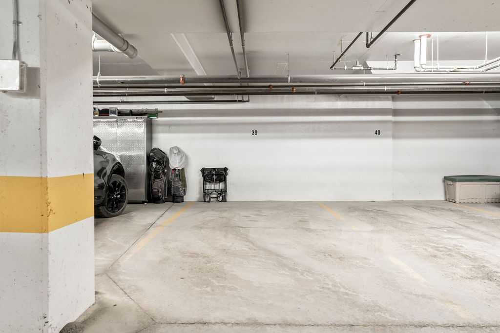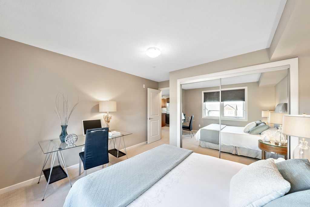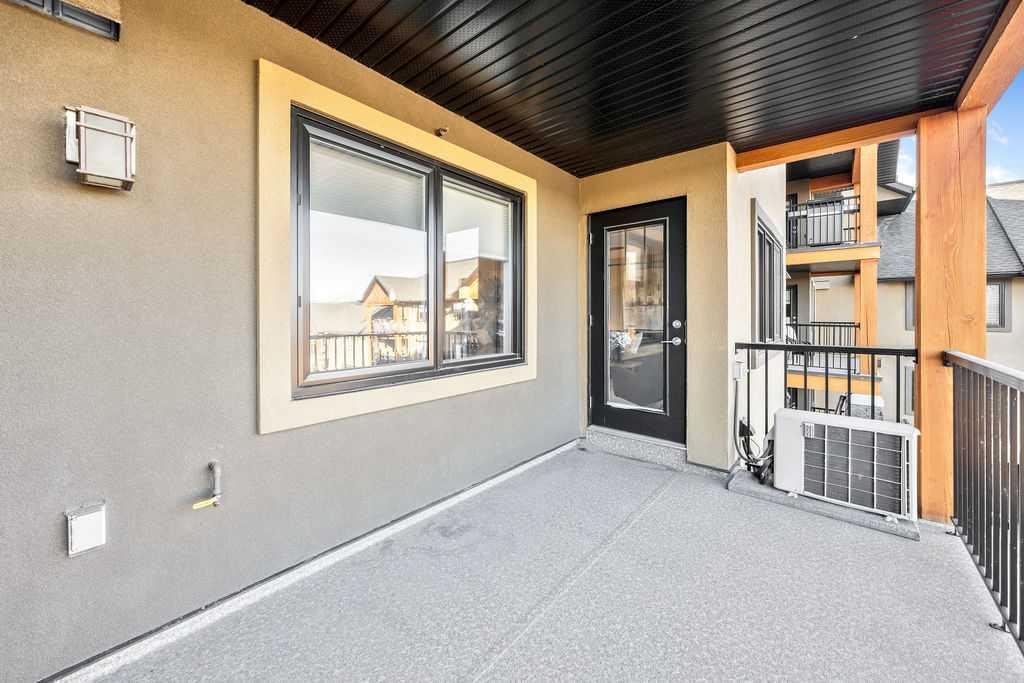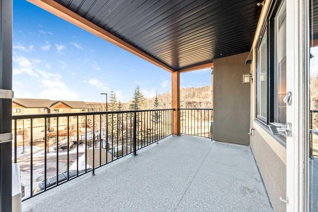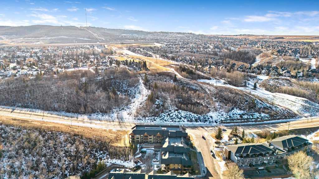 This beautifully maintained third-floor residence offers a rare blend of serenity, space, and thoughtful design within an intimate, adult-oriented (18+) building known for its strong governance and exceptional reserve fund. Inside, natural light pours through expansive windows, illuminating a well-considered floor plan that balances openness with privacy. The kitchen is both elegant and functional, anchored by stone countertops, stainless steel appliances (including a brand-new refrigerator), an oversized breakfast bar, under-cabinet lighting, a reverse-osmosis water system, and a generously sized pantry. It flows seamlessly into a dining area designed to comfortably host gatherings both casual and refined. The living room is spacious and inviting, and gives direct access to the balcony, an outdoor extension large enough for a BBQ and lounge seating, where peaceful nature views and visiting wildlife become part of daily life. The primary suite offers a calm and restorative escape, complete with a walk-through double-sided closet and a private ensuite with additional linen storage. A well-proportioned second bedroom and a substantial four-piece main bath, also featuring extra storage, provide flexibility for guests, hobbies, or a home office. Completing the interior is a massive in-unit laundry room, a rare and highly practical feature. Comfort is elevated year-round with air conditioning, while convenience is enhanced by two titled parking stalls (one underground, one surface) and a titled storage locker located on the same floor as the unit. Beyond the home, residents enjoy a beautifully appointed lobby and vibrant community amenities including a gazebo with outdoor gathering area - often the backdrop for weekly happy hours and social gatherings. Moments from the river pathways, Valley Ridge Golf Course, COP, and with effortless access to Stoney Trail and the mountains, this is a lifestyle defined by ease, connection, and quiet sophistication. Private, peaceful, and impeccably cared for, this is Valley Ridge living at its finest.