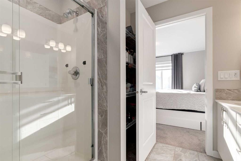 Welcome to this exceptional, fully finished home in the highly sought after lake community of Mahogany. Thoughtfully upgraded and meticulously maintained, this south facing home offers air conditioning, an oversized double detached garage, solar panels and over 2,200 square feet of developed living space; making it truly move in ready! The main floor features an inviting open concept layout with a spacious living room that flows seamlessly into the dining area and kitchen; ideal for both everyday living and entertaining. The kitchen is well appointed with quartz countertops, a full stainless steel appliance package with gas stove, an abundance of cabinetry, a pantry and stunning subway tile. A convenient two piece bathroom and a functional mudroom complete the main floor, adding to the home’s thoughtful and practical design. Upstairs, the primary suite offers a walk in closet and a private ensuite complete with dual vanities and an oversized shower. Two additional bedrooms, a full four piece bathroom and a convenient upper level laundry room provide excellent functionality for families and guests. The fully developed basement, complete with a separate side entry, expands the living space and includes a fourth bedroom, a full bathroom, a recreation room and additional storage. Step outside to enjoy the private, sun drenched south facing backyard, featuring low maintenance stamped concrete, a storage shed and an oversized double detached garage. Recent upgrades include Gemstone exterior lighting, central air conditioning for year round comfort and solar panels. Located just steps from Mahogany Lake, residents enjoy exclusive access to swimming, paddle boarding, skating, and year round community events. This is a rare opportunity to own a turn key home in one of Calgary’s most desirable lake communities; offering not just a home, but a true lifestyle.