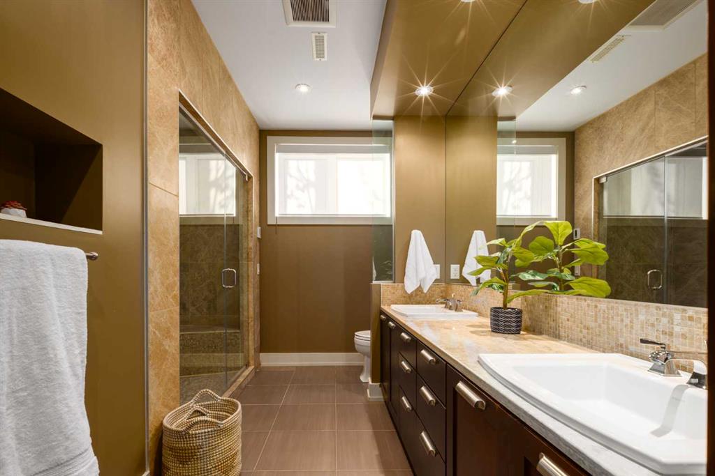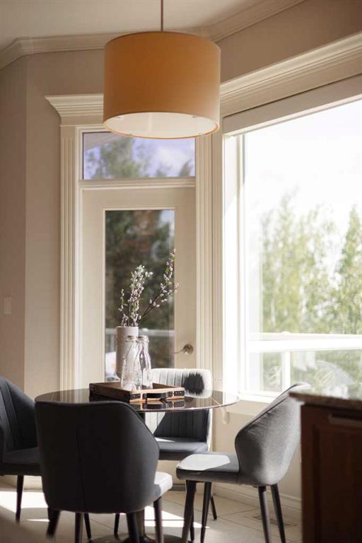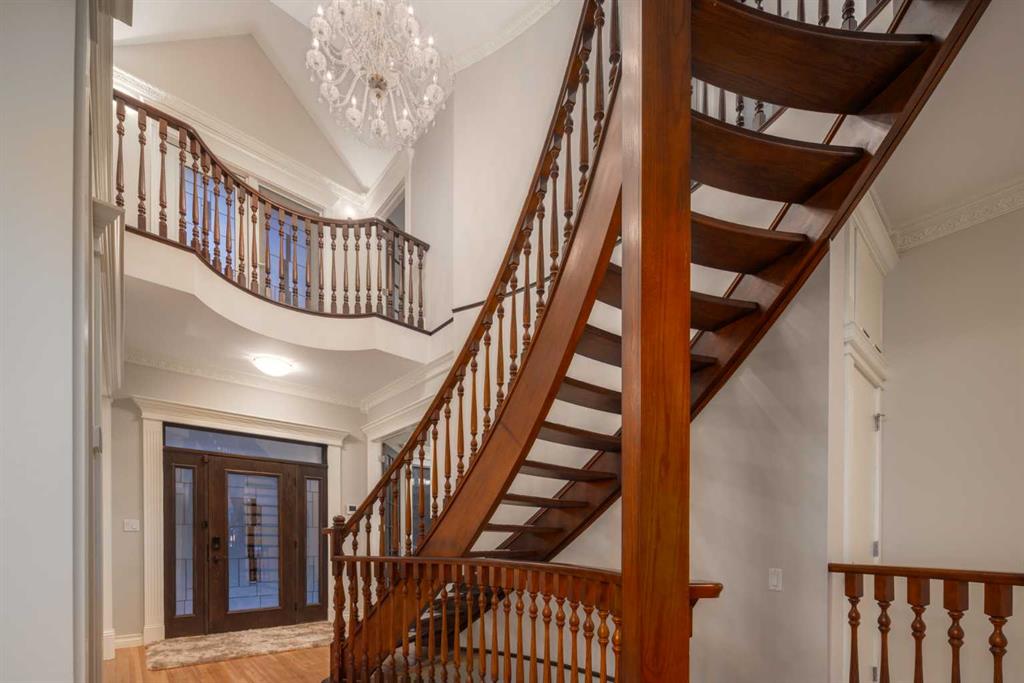 NEW PRICE! Located in the prestigious gated community of The Slopes, this exceptional estate home at 57 Slopes Point SW masterfully blends timeless craftsmanship, sustainable luxury, and an unbeatable location. Built with enduring quality, the home features in-floor radiant heating throughout multiple levels, the attached triple garage, and even the private heated driveway—ensuring ultimate comfort and energy efficiency through every season. A concrete tile roof adds to the home’s structural integrity and low-maintenance appeal, underscoring the care and foresight behind every detail of this custom build. Set on a South-facing lot with views of The Rocky Mountains, this 5,500+ sq. ft. estate offers 4 spacious bedrooms above grade and 4.5 bathrooms, perfectly suited for families and entertainers alike. The heart of the home is the chef-inspired kitchen, which showcases custom walnut cabinetry, a Sub-Zero full fridge and full freezer, Miele six-burner gas range, Wolf range hood, and a Marvel beverage fridge, all thoughtfully selected for their performance and elegance. Granite countertops, a generous island, and panoramic views complete the space. Throughout the home, you’ll find stunning crown molding, detailed millwork, soaring 10’ ceilings, and expansive windows that flood the interior with natural light. A dramatic staircase, custom built-ins, and warm gas fireplace with a marble feature wall elevate the main floor living areas. The main level also includes formal living and dining spaces, a dedicated home office, convenient laundry room, and elegant powder room, plus access to a sunlit deck that spans the back of the home. Upstairs, the primary retreat offers luxury and serenity, featuring a private balcony with mountain views, a spa-inspired 6pc ensuite with soaker tub, dual vanities, and custom glass shower, along with a custom walk-in closet fitted with rich walnut cabinetry. Three additional bedrooms and beautifully appointed bathrooms provide ample space for a growing family. The fully finished walkout basement includes a 4pc bathroom with steam shower, a home theatre (convertible to a fifth bedroom), fitness room, and expansive recreation space with gas fireplace. A wet bar complete with dishwasher, beverage fridge, and wine fridge leads to a covered patio and beautifully landscaped backyard—perfect for summer entertaining. Positioned just moments from Aspen Landing Shopping Centre, Calgary’s top-rated private schools (including Webber Academy, Rundle College, and Calgary Academy), and only 20 minutes to downtown, this location is as convenient as it is exclusive. Surrounded by professional landscaping, mature trees, and carefully curated outdoor living spaces—including multiple decks, BBQ areas, and a heated driveway—this home represents a rare opportunity to own in one of Calgary’s most coveted communities. For those who value sustainable design, superior craftsmanship, and a prime location, 57 Slopes Point SW is the ultimate executive retreat.