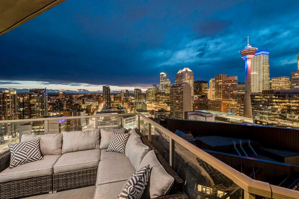 Situated in the heart of Beltline, Keynote One offers ultra convenient downtown living just steps to Stampede Park, BMO Centre, and Calgary's Saddledome. This Sub-Penthouse offers an exclusive EXTENDED balcony, plus TWO TITLED VIP parking stalls - a rarity in this building! With soaring floor to ceiling windows, second balcony off the master bedroom, and breath-taking views of the cities' skyline, this unit is a one-of-a-kind. Upgrades include new Vinyl Plank flooring, washer/dryer, water filtration system (ion filter), and new sink. Open concept, modern and industrial describe the vibe of this layout featuring TWO bed / TWO baths, boasting unbeatable privacy and functionality. Lie in your master retreat, enjoy the two-way fireplace, soak in the first- class views of the Calgary Tower and city skyline. Feel the grandness of the master ensuite with second balcony, double sinks, separate shower, massive tub, and OVER-SIZED double walk -in closet with custom California Closet built -ins. Keynote offers an on-site manager, access to the fully equipped fitness facilities (weights and cardio room), two guest suites, owner’s lounge with TVs, pool table, partial kitchen, BBQs, outdoor patio, plus 15 rooftop oasis, bike storage, and direct access to Sunterra Market. This unbeatable location offers high-quality living, the Plus 15 Skywalk system, and easy access to main thoroughfares for city-wide access. Weather you are looking for your next home or a prime investment opportunity, this is downtown living done right.