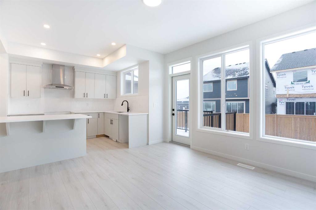 Welcome to this beautifully designed Morrison Homes Dillon I model, a striking two-storey semi-attached home is situated in the highly desirable and rapidly growing community of Sirocco at Pine Creek. Offering over 1,600 sq. ft. of thoughtfully finished living space above grade, this home combines modern elegance with practical design, complemented by a front-attached double garage and an intelligently planned layout that effortlessly balances style, comfort, and everyday functionality for families of all sizes. The main floor is designed for both entertaining and everyday living, featuring an open-concept layout bathed in natural light, highlighted by light grey luxury vinyl plank flooring that flows seamlessly throughout. The contemporary kitchen is a true centerpiece, equipped with sleek grey cabinetry accented with black hardware, quartz countertops, and a generous central island—perfect for meal preparation, casual dining, or social gatherings. Stainless steel appliances complete the kitchen, while the adjacent dining and living areas are enhanced by a striking grey tile feature wall with an electric fireplace, creating a warm, inviting, and modern focal point that effortlessly blends style and function. A thoughtfully designed mudroom with built-in cabinetry and storage provides a seamless transition from the garage, keeping everyday essentials organized and accessible. The main floor is completed with a convenient powder room, offering both practicality and style for family life and entertaining. Upstairs, the home continues to impress with three well-appointed bedrooms, including a private primary suite designed for comfort and relaxation. This retreat features a spacious walk-in closet and a beautifully finished ensuite bathroom with tiled flooring and a contemporary glass shower enclosure, offering a spa-like experience in the comfort of your own home. Two additional bedrooms are generously sized and share a full bathroom, also finished with high-quality modern tile. Top-floor laundry adds convenience to your daily routine, while soft carpeting throughout the upper level enhances comfort and warmth throughout the private spaces. The unfinished basement presents an exceptional opportunity for future development, providing a versatile blank canvas where additional living space, recreational areas, or extra bedrooms can be tailored to suit your family’s evolving needs and lifestyle preferences. Situated in a vibrant and growing southwest community with easy access to parks, walking and cycling pathways, local schools, and future amenities, this home combines thoughtful design, modern finishes, and long-term flexibility. From the stylish interiors to the functional layout and prime location, the Dillon I model at 49 Creekside Passage is a home that truly delivers a refined balance of comfort, elegance, and enduring value for discerning buyers seeking both quality and lifestyle.