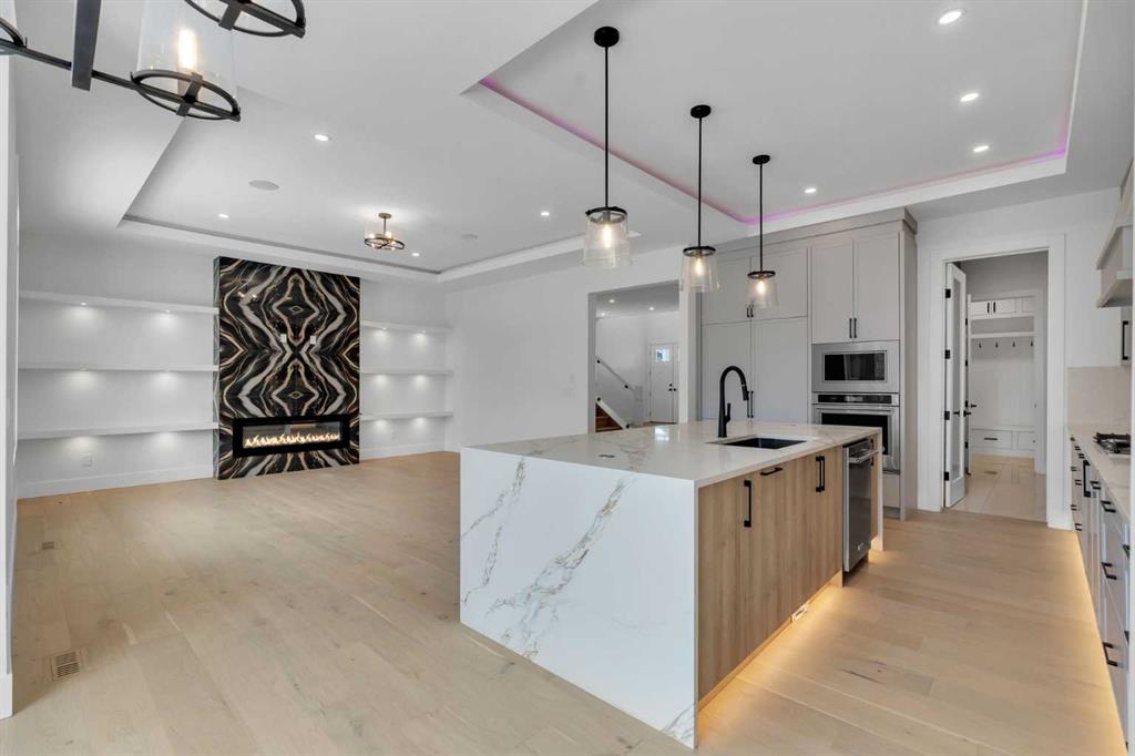 AMAZING OPTION FOR YOU - BUILDER WILLING TO BUILD A LEGAL SUITE W 2 BEDS & 1 FULL BATH (COST TO BE DETERMINED BASED ON REQUIREMENTS & LEGAL SUITE DEVELOPMENT IS SUBJECT TO CITY APPROVAL) - 10' CEILINGS ON MAIN FLOOR AND 9' ON UPPER FLOOR AND BASEMENT!!! OVER 3200 SQFT, BRAND NEW HOME, TRIPLE ATTACHED GARAGE, 5 BEDROOMS, 3.5 BATHROOMS, SIDE ENTRANCE TO BASEMENT - ELEGANT DESIGN AND MODERN FINISHING - This home in Kinniburgh is perfect for a large family and offers the convenience of being close to shops, schools, the lake and all that Chestermere has to offer. Walking in to your home you are greeted with a large foyer and storage space. A hallway connects a den (that can be used as a bedroom), and bathroom to the rest of the main living space. The TRIPLE ATTACHED GARAGE, opens into a mud room and SPICE KITCHEN which allows you to keep your home in pristine condition. The kitchen is a chef's dream with built in STAINLESS STEEL appliances, a large island and beautiful wood finished cabinets. A large living room is warmed with a TILE FACED FIREPLACE, and this space opens onto your DECK. The second floor boasts 4 bedrooms and 3 bathrooms. Including 1 primary ensuite with and expansive 5PC bathroom and a large walk in closet. This bathroom has a full size soak tub and dual vanities. Another bedroom is complete with an ensuite bathroom and walk in closet. 2 other bedrooms and 1 bathroom, laundry and a large family room complete this floor. Welcome to your home! Please note that front landscaping and finishing will be done including a tree. Option for the builder to develop the basement already includes SIDE ENTRANCE. Interior pictures are from another home built by the builder.