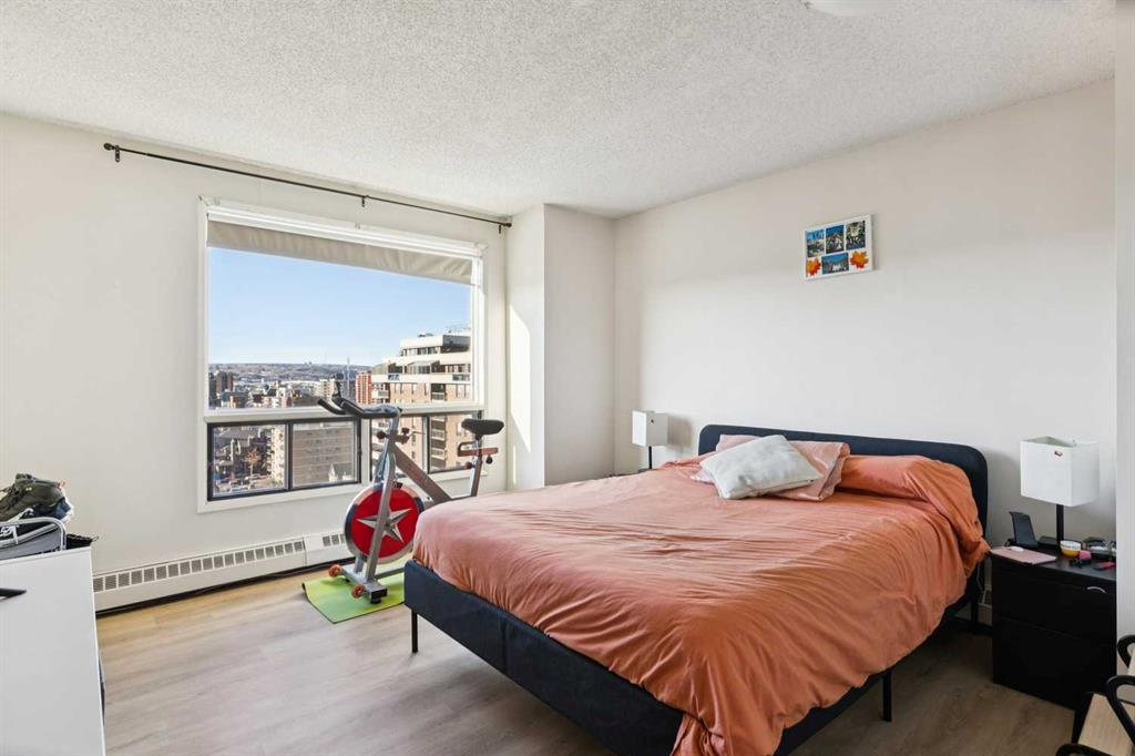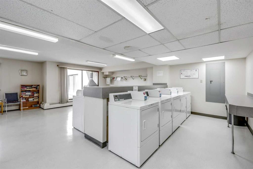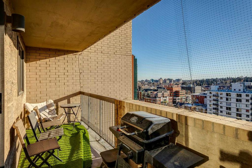 A RARE FIND! Enjoy the choice location in the building with south and west Beltline views from this corner unit, located at the end of the hallway allowing for lots of privacy with only one neighboring common wall. The windows on 3 exterior walls bring in an abundance of natural light. The spacious 963 sqft floor plan features a large living room, fully size dining area, open kitchen, primary bedroom with 2 pc ensuite, 2nd bedroom perfect for home office or den, 4 pc bath and a storage room. Full size sliding doors open onto a large south exposure balcony, perfect for a BBQ and additional seasonal storage. Titled, underground parking stall #18. Dorchester Square is a concrete building with post tension cables - maintenance and engineer's reports available. Excellent building amenities: located on the 2nd floor is a social/games room with billiard table and a large well maintained common laundry room. The main floor has a fully equipped gym, women's sauna and a racquet court. Well managed building with on-site office and manager. Pet restrictions (cats ok, no dogs) and no short term rentals. Many long-time owners in the building which give the building a feeling of community.