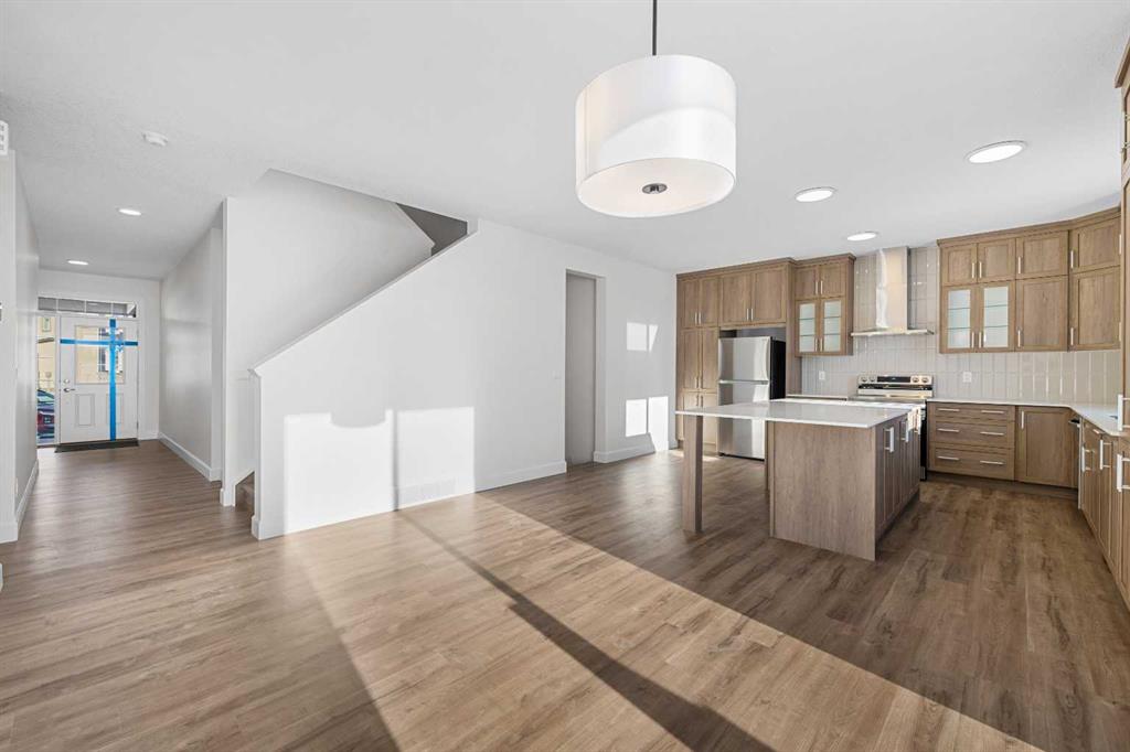 Airdrie is one of Alberta’s fastest-growing cities, offering a perfect blend of modern conveniences and a close-knit community feel. Among its many vibrant neighborhoods, Southwinds stands out as a desirable, family-friendly community with excellent amenities, green spaces, and accessibility. If you’re looking for a brand-new home that checks all the right boxes, this stunning 5-bedroom, 3.5-bathroom property in Southwinds is an ideal choice. Sitting on a spacious pie lot of over 7,000 square feet, this home provides ample outdoor space for gardening, entertaining, or simply enjoying the extra room for your family. Designed with both functionality and style in mind, the house features an open-concept layout, a main-floor bedroom with a full bath, and luxury vinyl plank flooring throughout—no carpet at all! Whether you’re a growing family, an investor, or someone looking for a fresh start in a modern community, this property offers everything you need. One of the standout features of this home is its functional and spacious layout, making it suitable for large families or multi-generational living. The main level welcomes you with a bright and airy open concept design. The spacious living room is perfect for hosting guests, relaxing after a long day, or spending quality time with loved ones. Large windows bring in an abundance of natural light, creating a warm and inviting atmosphere. Adjacent to the living room is the modern kitchen, which boasts ample cabinetry, sleek countertops, and high-end stainless steel appliances. Whether you’re a seasoned cook or someone who enjoys preparing quick meals, this kitchen offers the space and convenience you need. A large island provides additional workspace and doubles as a breakfast bar, making it an excellent spot for casual meals or morning coffee. The dining area, seamlessly connected to the kitchen, offers plenty of space for a large dining table, making family dinners and gatherings even more enjoyable. Sliding glass doors lead to the expansive backyard, which is one of the home’s most impressive features. Main Floor Bedroom & Full Bath – Ideal for Guests or Multi-Generational Living One of the biggest advantages of this home is the main-floor bedroom with a full bathroom. This is a rare and highly desirable feature, especially for families with elderly parents, frequent guests, or anyone who prefers to have a bedroom on the ground level. The convenience of having a full bath nearby ensures privacy and ease of access without the need to climb stairs. Moving to the second level, you’ll find a spacious family room, providing an additional living space that can be used as a media room, playroom, or home office. This area is perfect for families who need extra room to relax without using the main living area downstairs. The primary bedroom is a true retreat, offering ample space, a large walk-in closet, and a luxurious ensuite bathroom. Featuring dual sinks, a spacious shower, and elegant finishes.